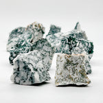Tree Agate is a white stone with green inclusions, also known as dendrites, that resemble tree branches. Tree agate is a type of chalcedony quartz with manganese or iron oxides that enter cracks in white quartz as it forms. It is often found in Uruguay, Brazil, and India.