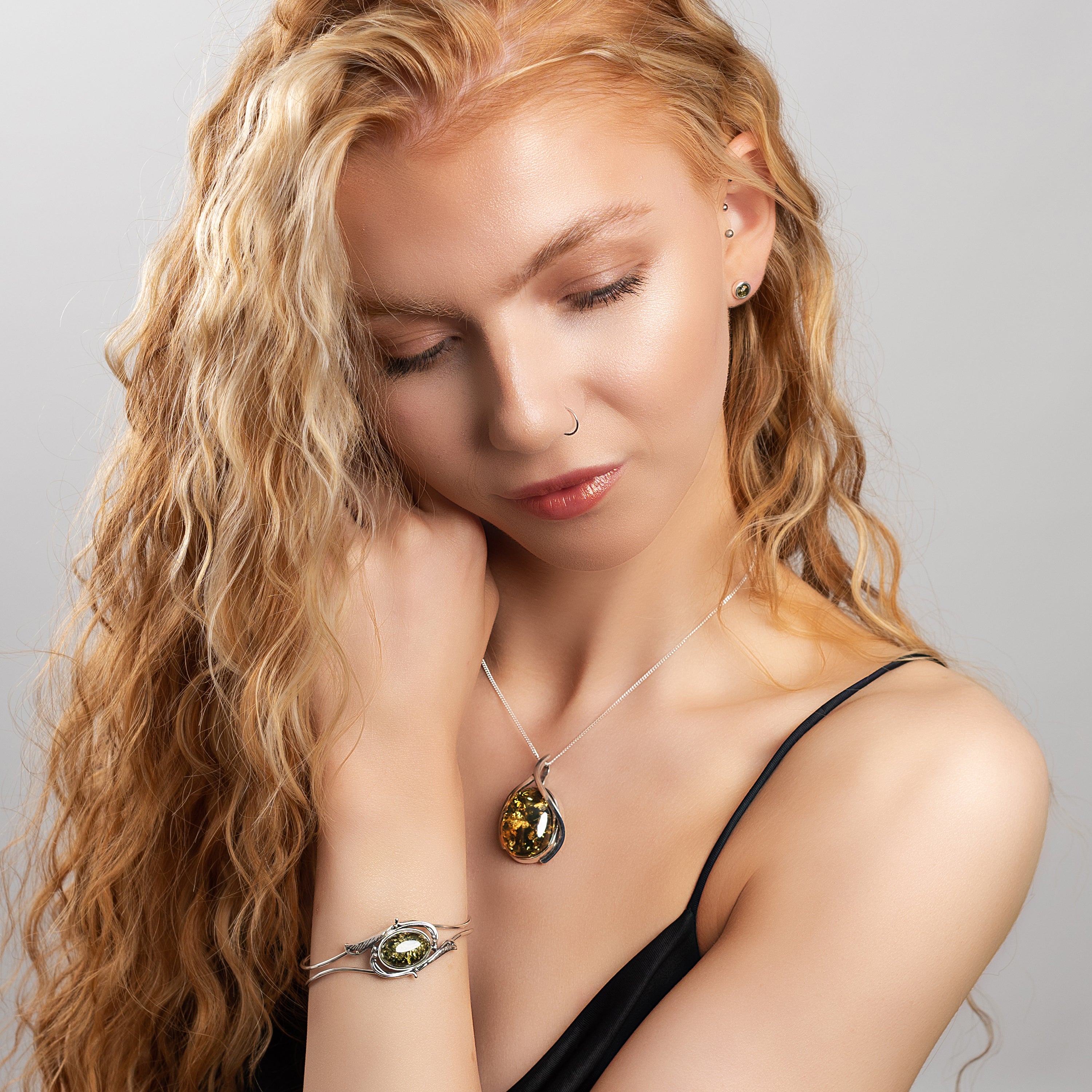 The colour, clarity and detail of this piece is as a result of exposing the natural fossil element to high temperatures, pressures and polishing. Bringing out the natural beauty of the gemstone in the same way that a diamond receives a faceted cut. Heating of the amber stone results in an effect of tiny internal explosions, creating unique organic patterns, giving each piece a truly individual character.