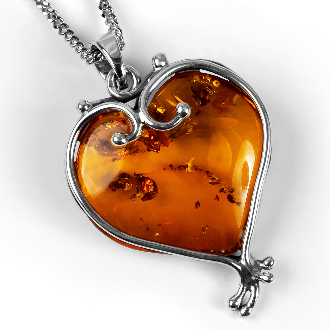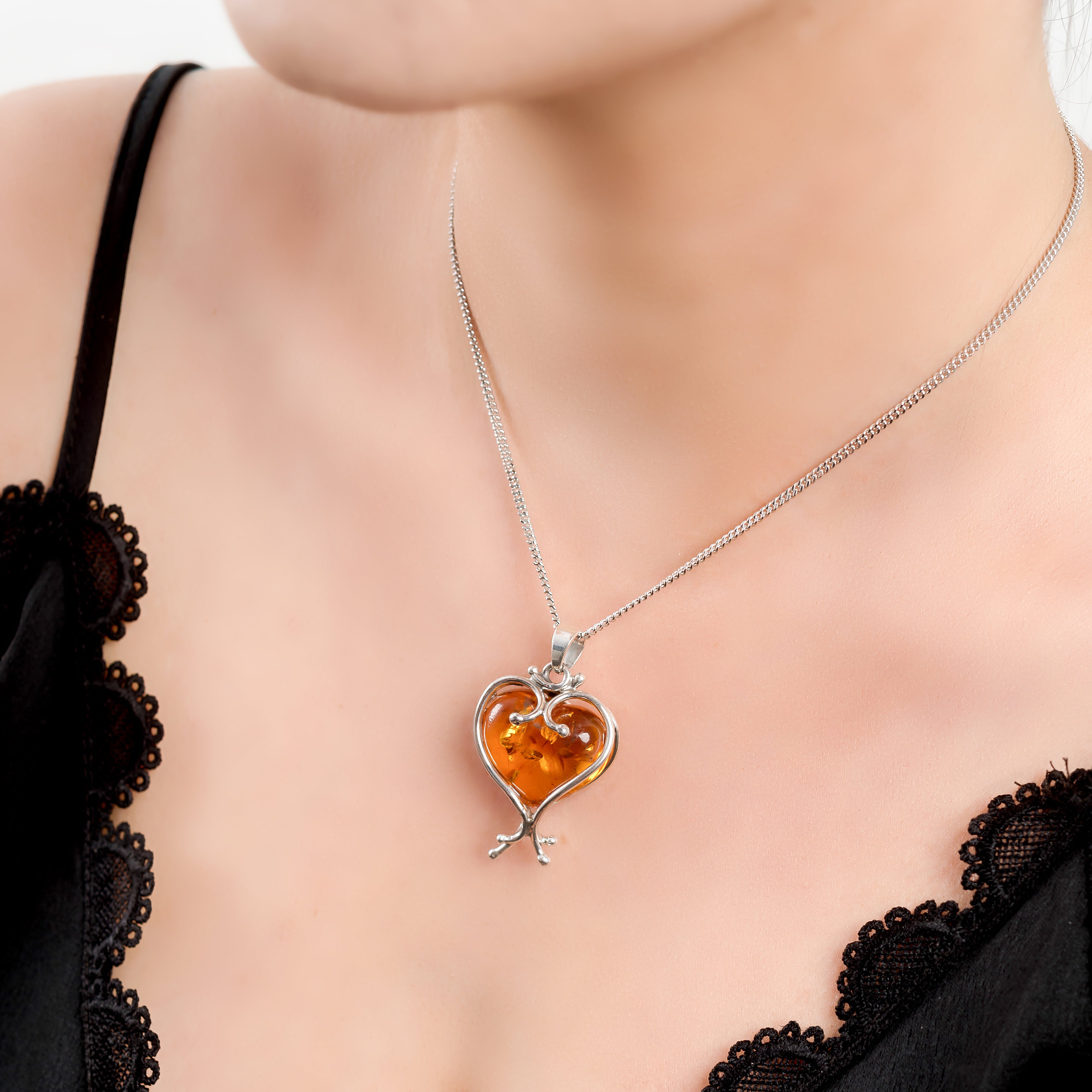 Heart Shape Baltic Amber and Silver Necklace - Natural Designer Gemstone