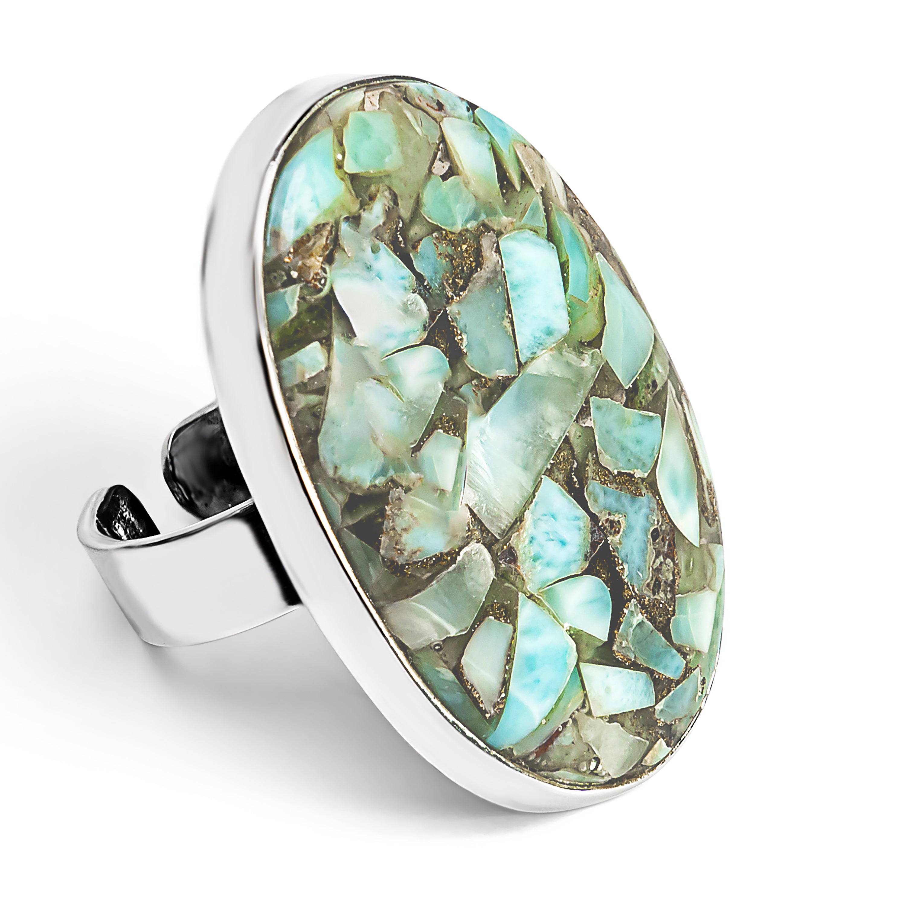 Larimar Composite Oval Statement Ring - Natural Designer Gemstone