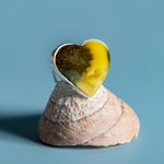 Natural Beauty: Baltic Green Amber Heart Ring in Silver