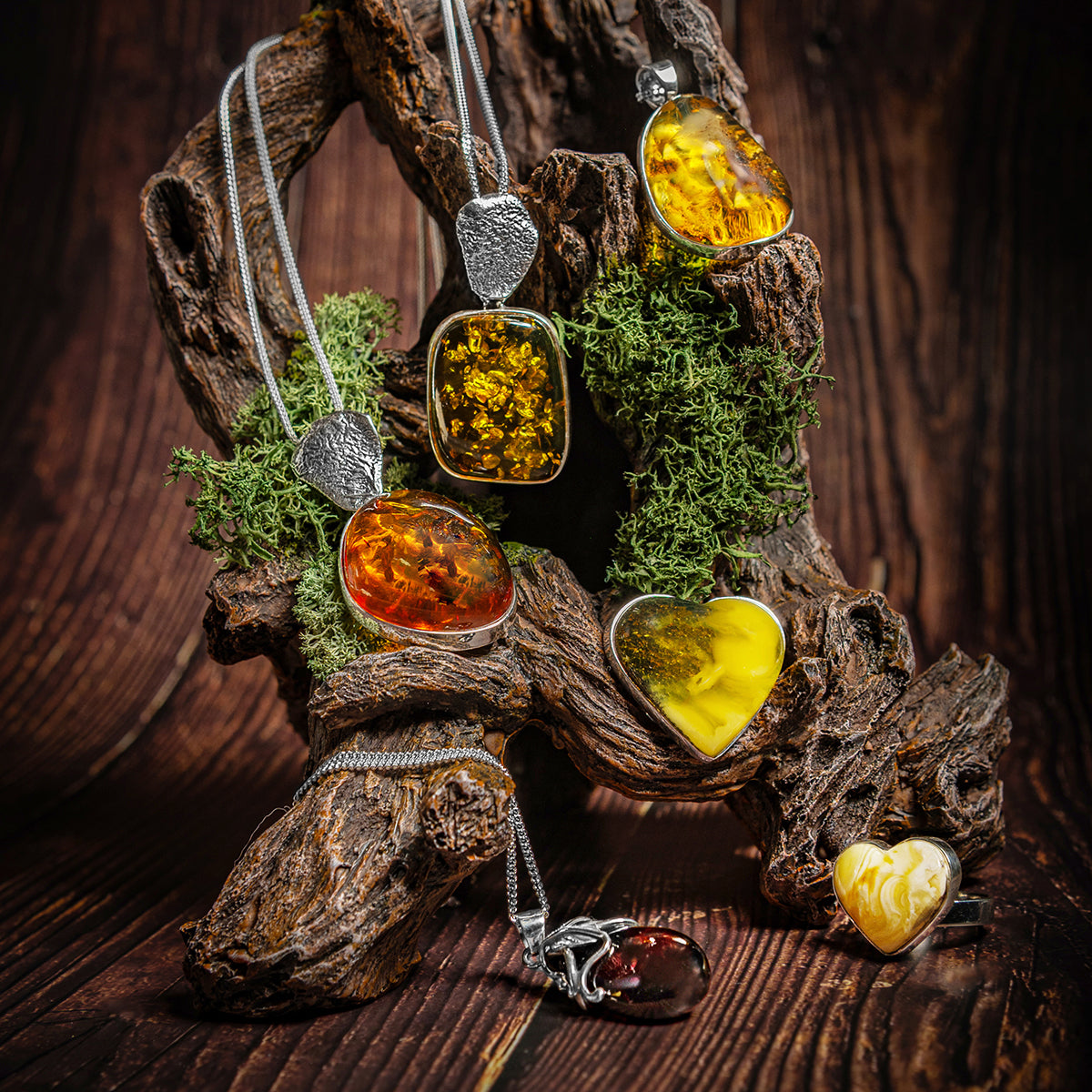 Amber is a fossilised tree resin dating back around 40-60 million years ago. The origin trees that oozed amber resin are long extinct, leaving behind a history of natural beauty.