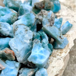Discover the charm of this adorable Larimar necklace, featuring a rare sky-blue gemstone from the Dominican Republic.