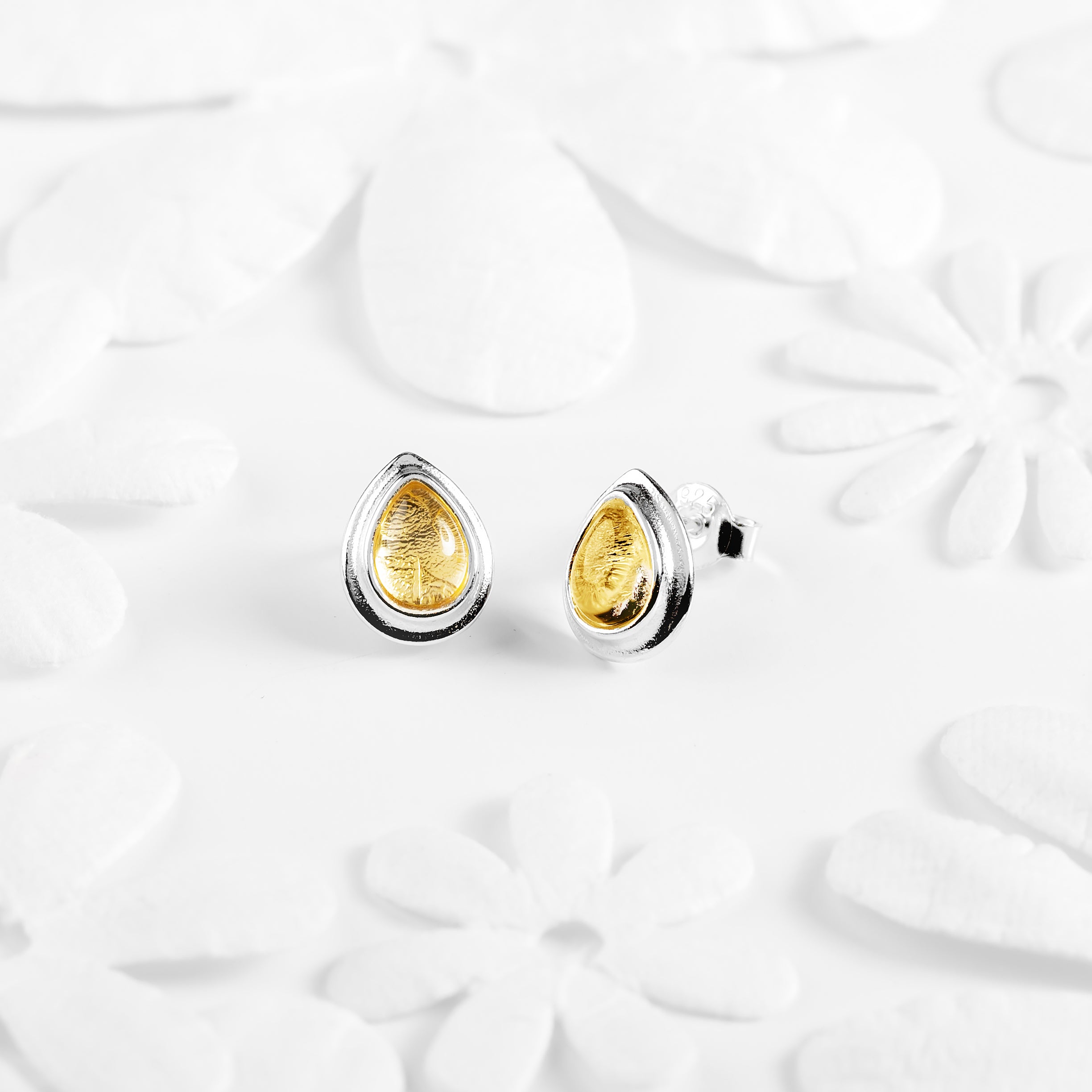 Classic Teardrop Stud Earrings in Silver and Citrine