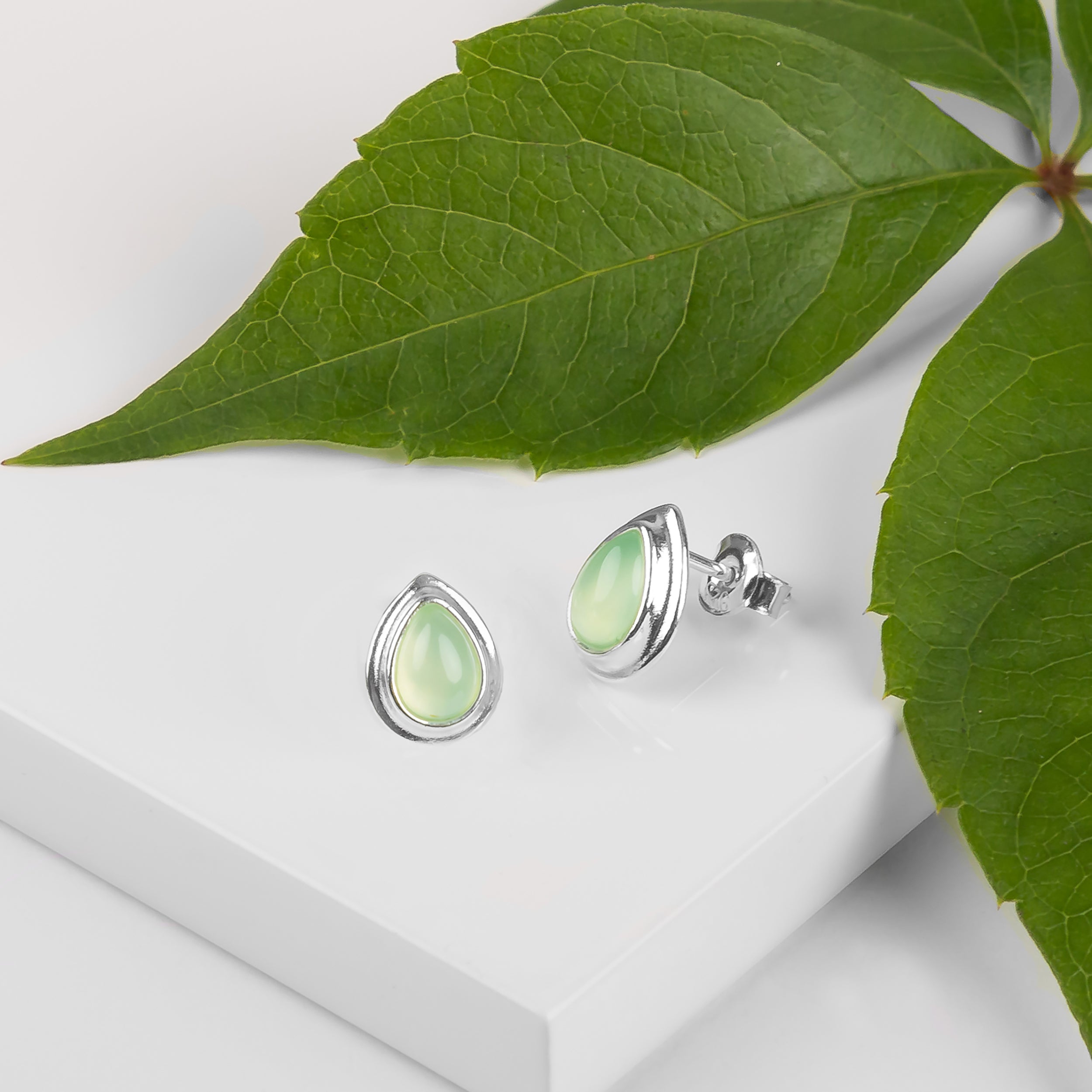 Crafted in solid 925 silver, each earring has a single teardrop shaped natural Prehnite gemstone.  With a solid silver stem, secure butterfly back and delicate design, these earrings are perfect of all day wearing.