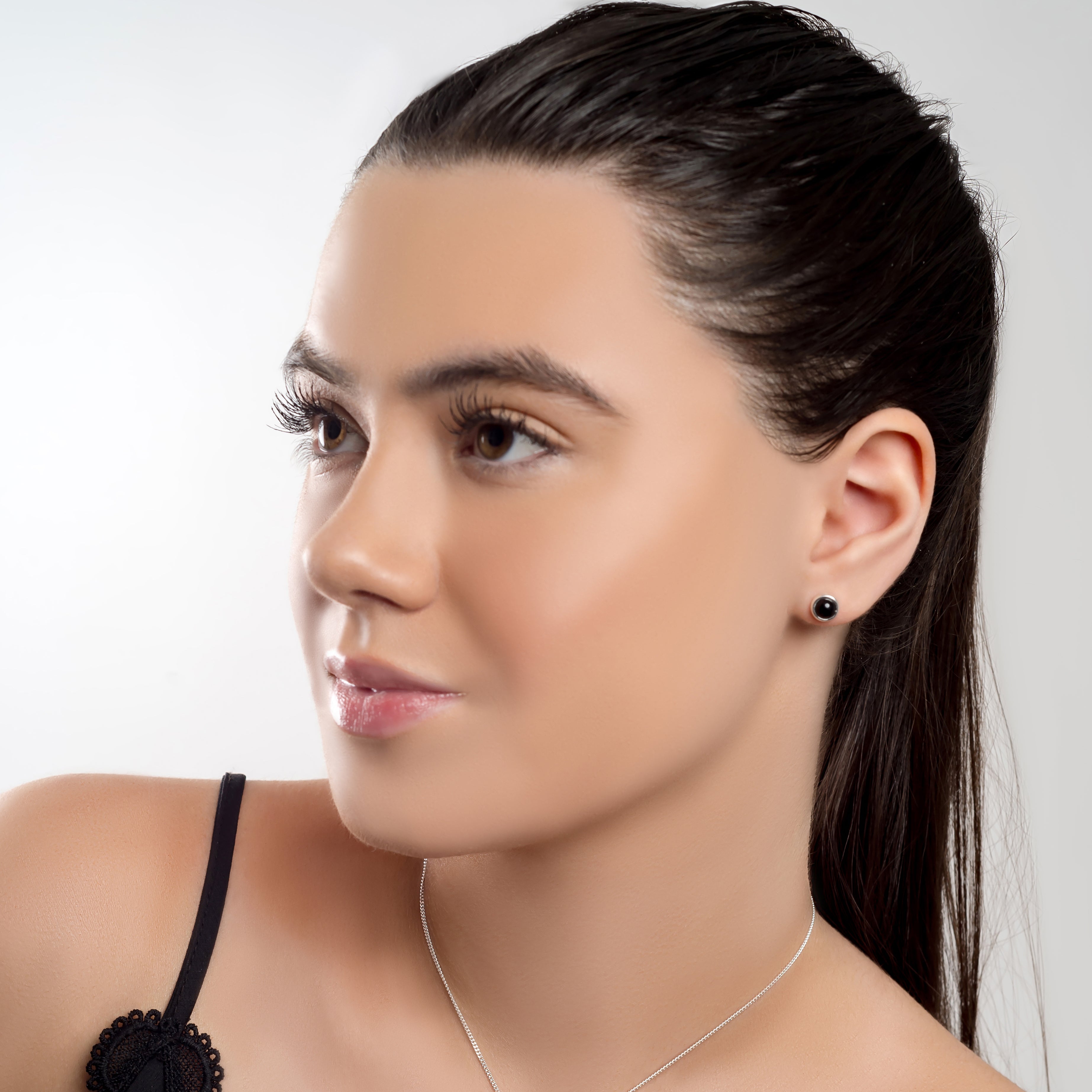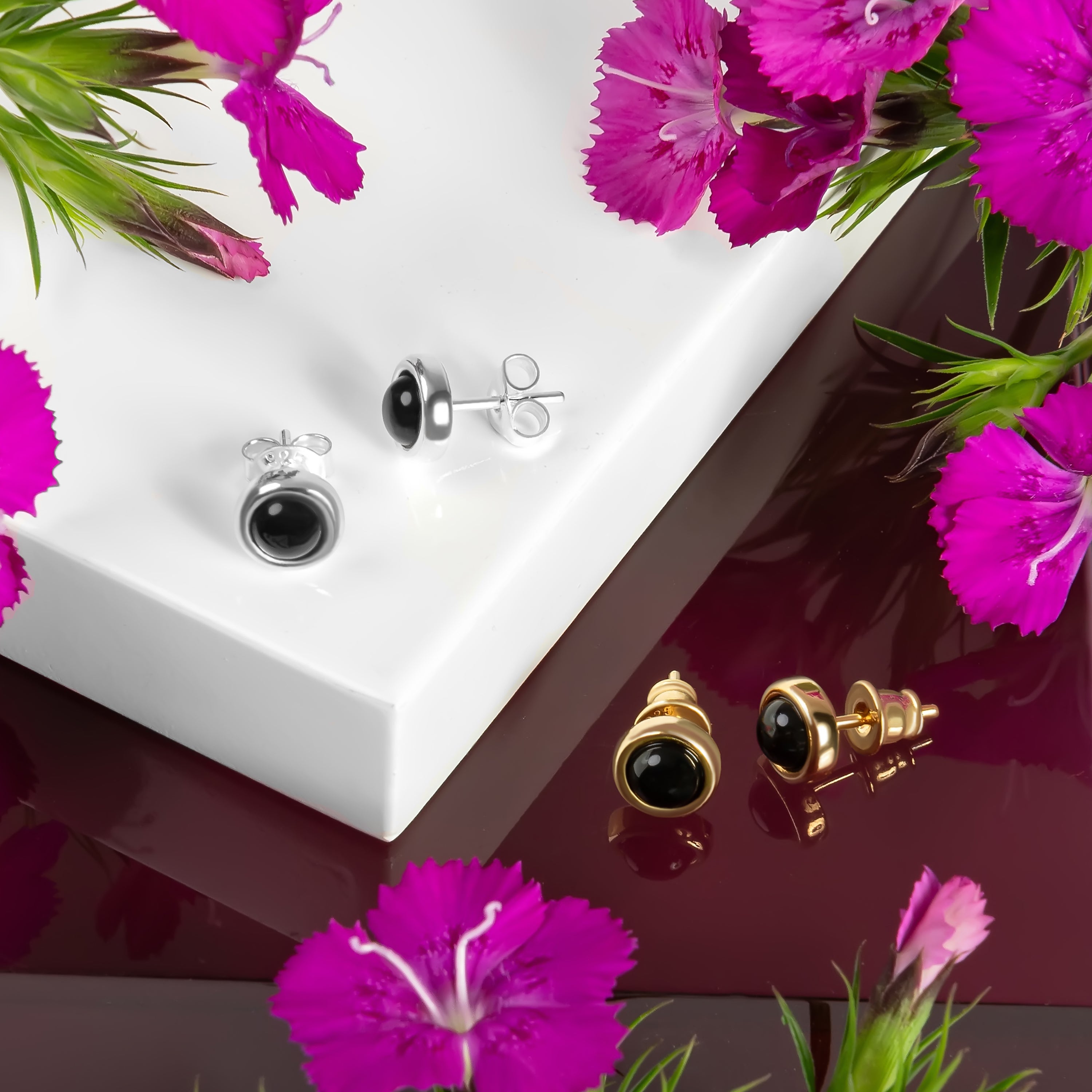 Silver and Black Onyx Small Round Stud Earrings are perfect for achieving casual everyday style.