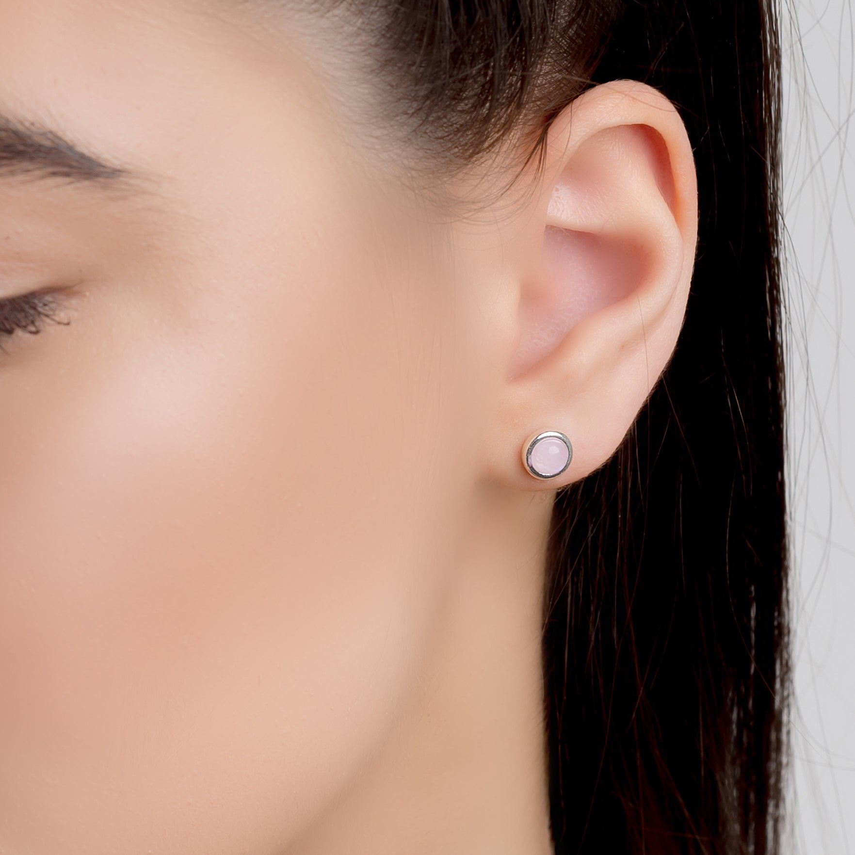 Silver and Rose Quartz Small Round Stud Earrings are perfect for achieving casual everyday style.