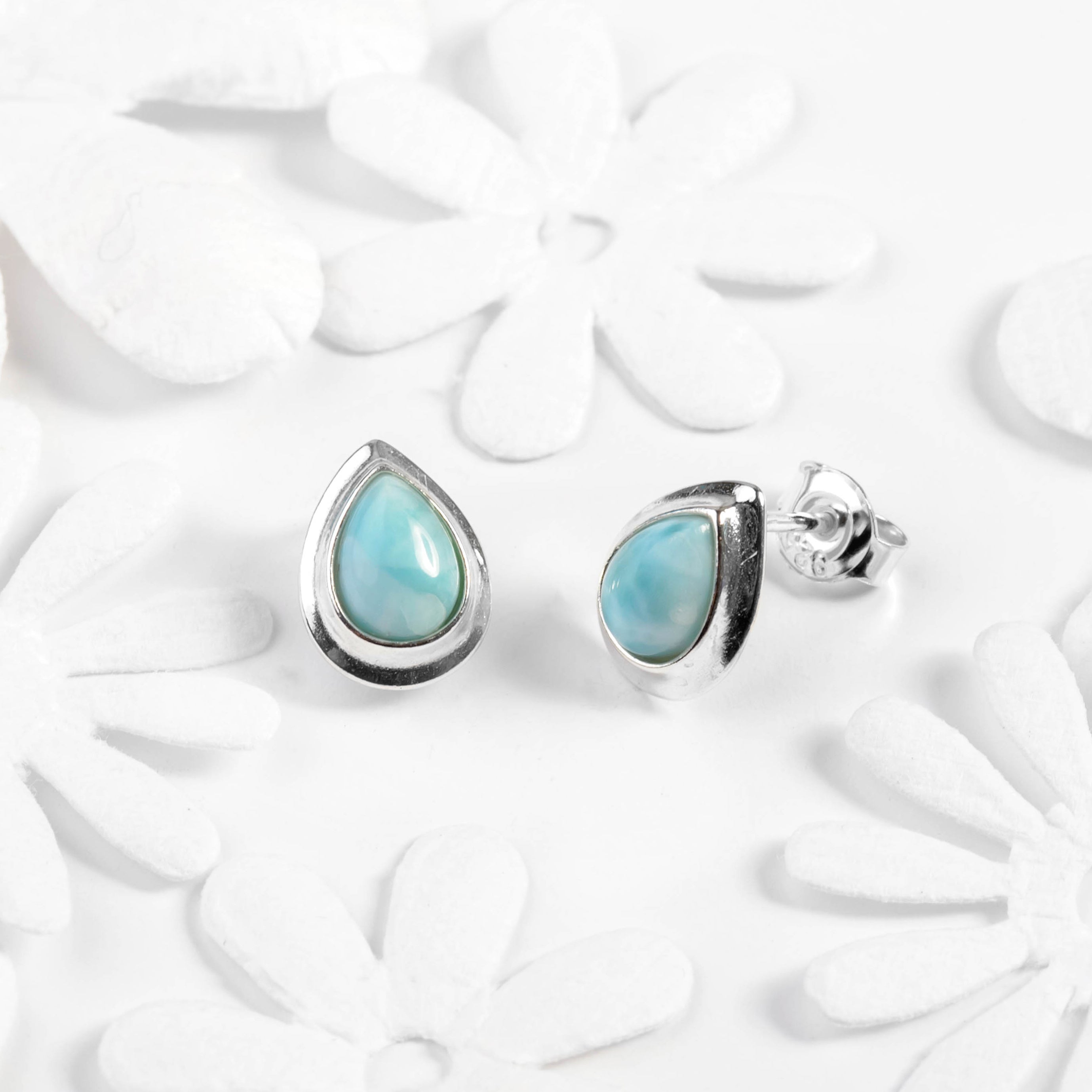 Classic Teardrop Stud Earrings in Silver and Larimar