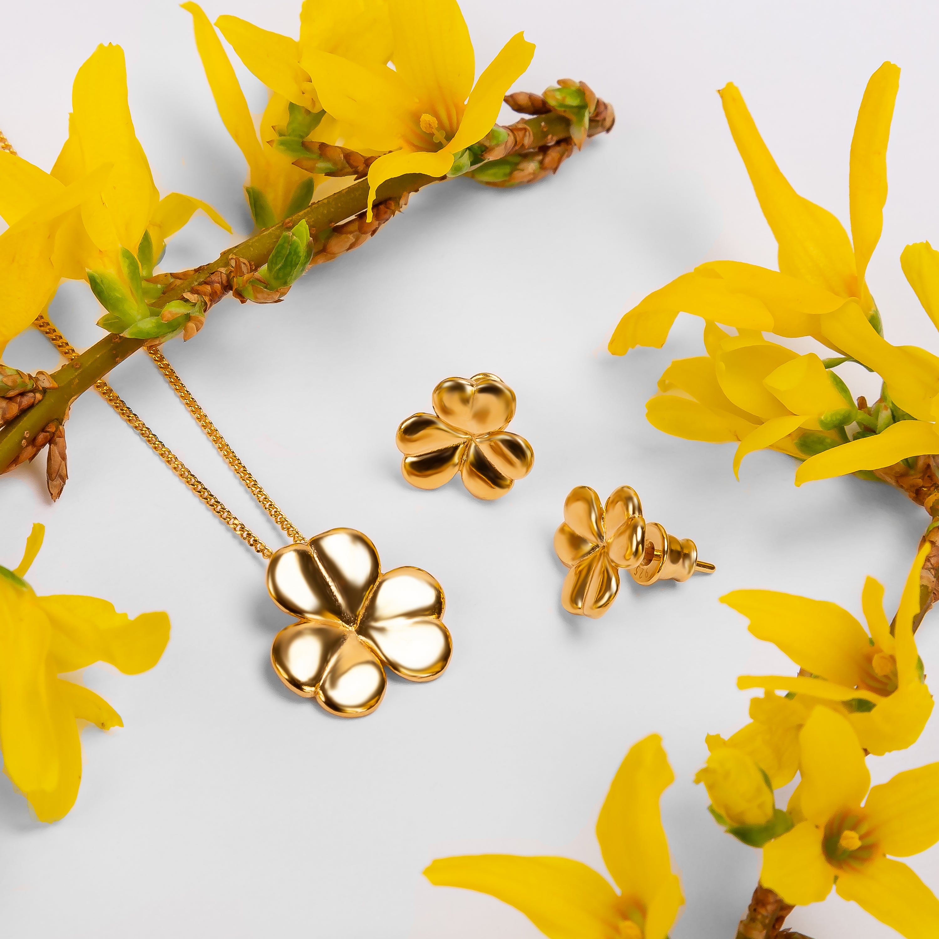 Crafted in 925 silver with 24ct Gold plating, it has been carefully designed into the typical shape of this well-known symbol. With extra detailing to enhance each of the 3 Shamrock petals. Complete with a gold plated chain, it will sit beautifully on the neckline.