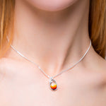 Capturing the beauty of all sunsets, this necklace will make wonderful gift for any lover of Amber or unusual gemstones. Be sure to pair with the matching Earrings for the ultimate WOW factor.