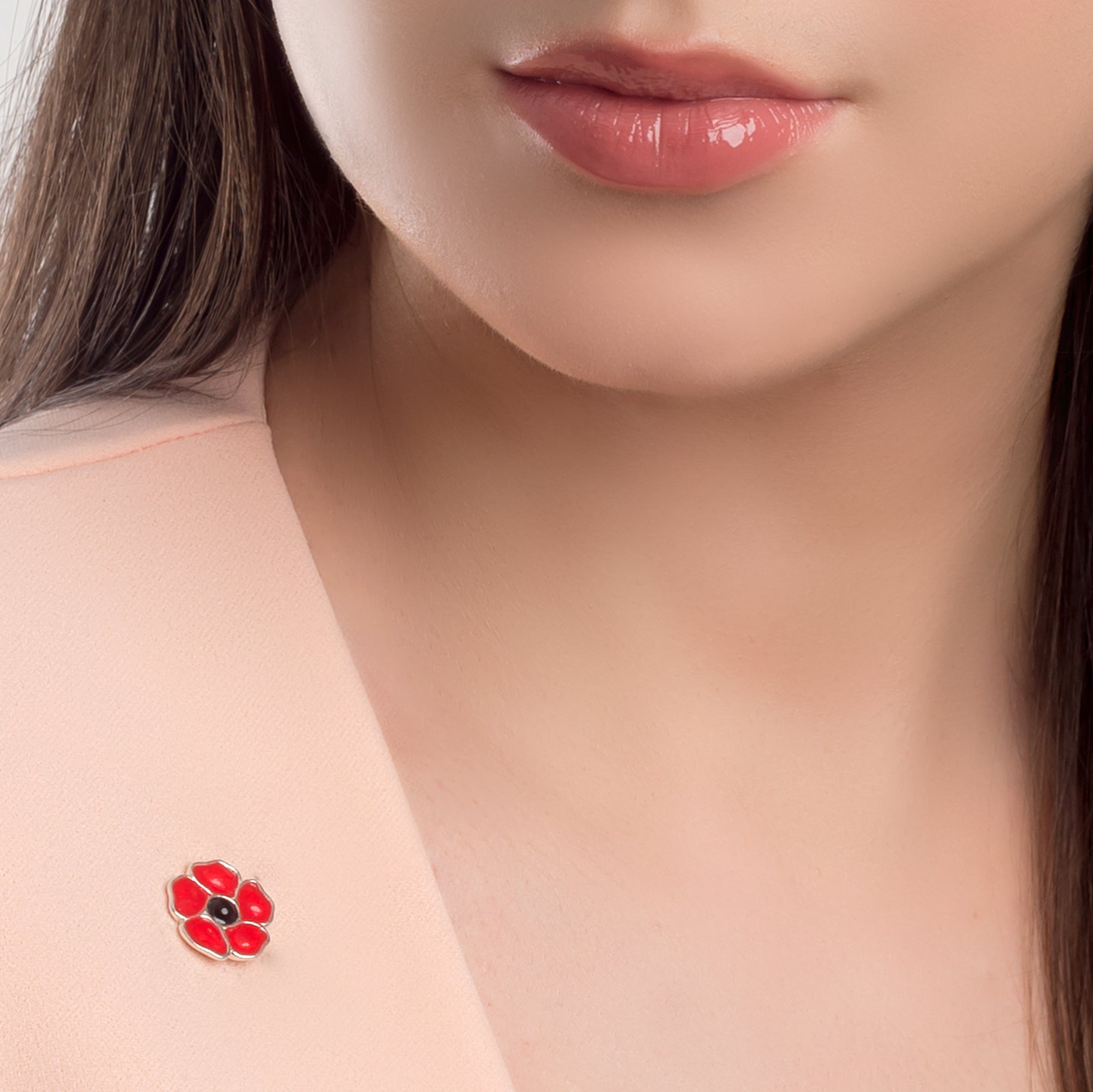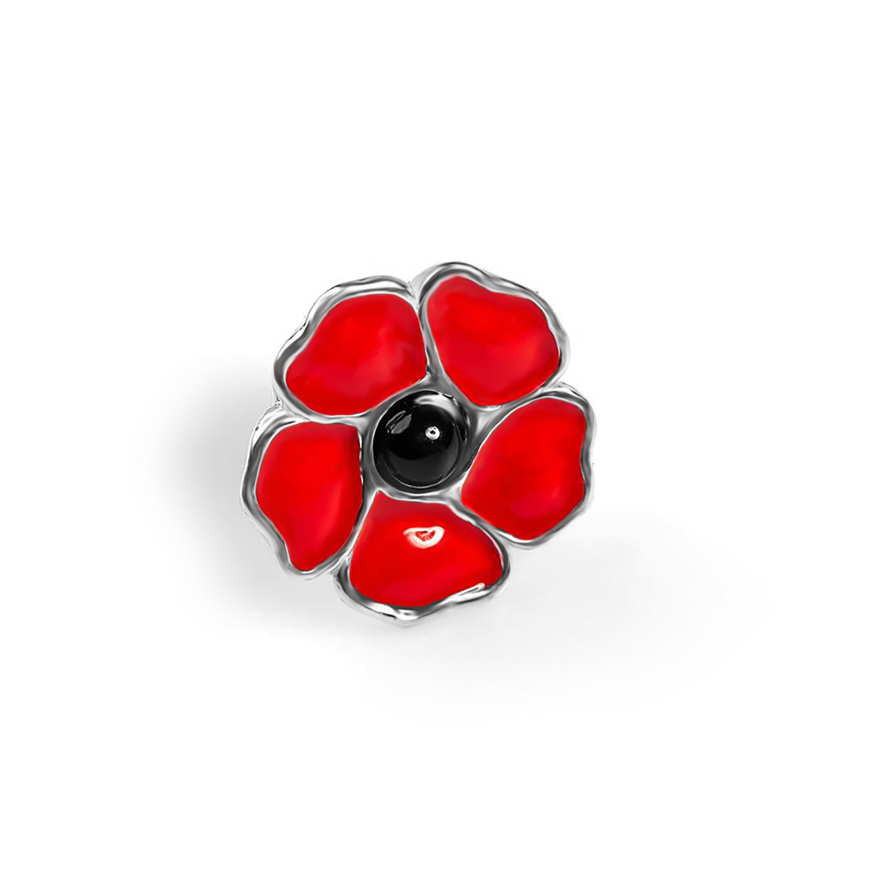 Hand-Painted Poppy Flower Pin in Silver and Amber
