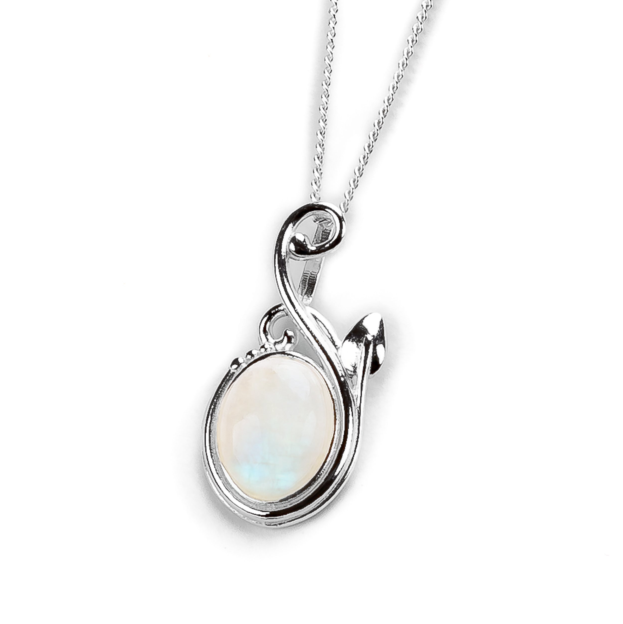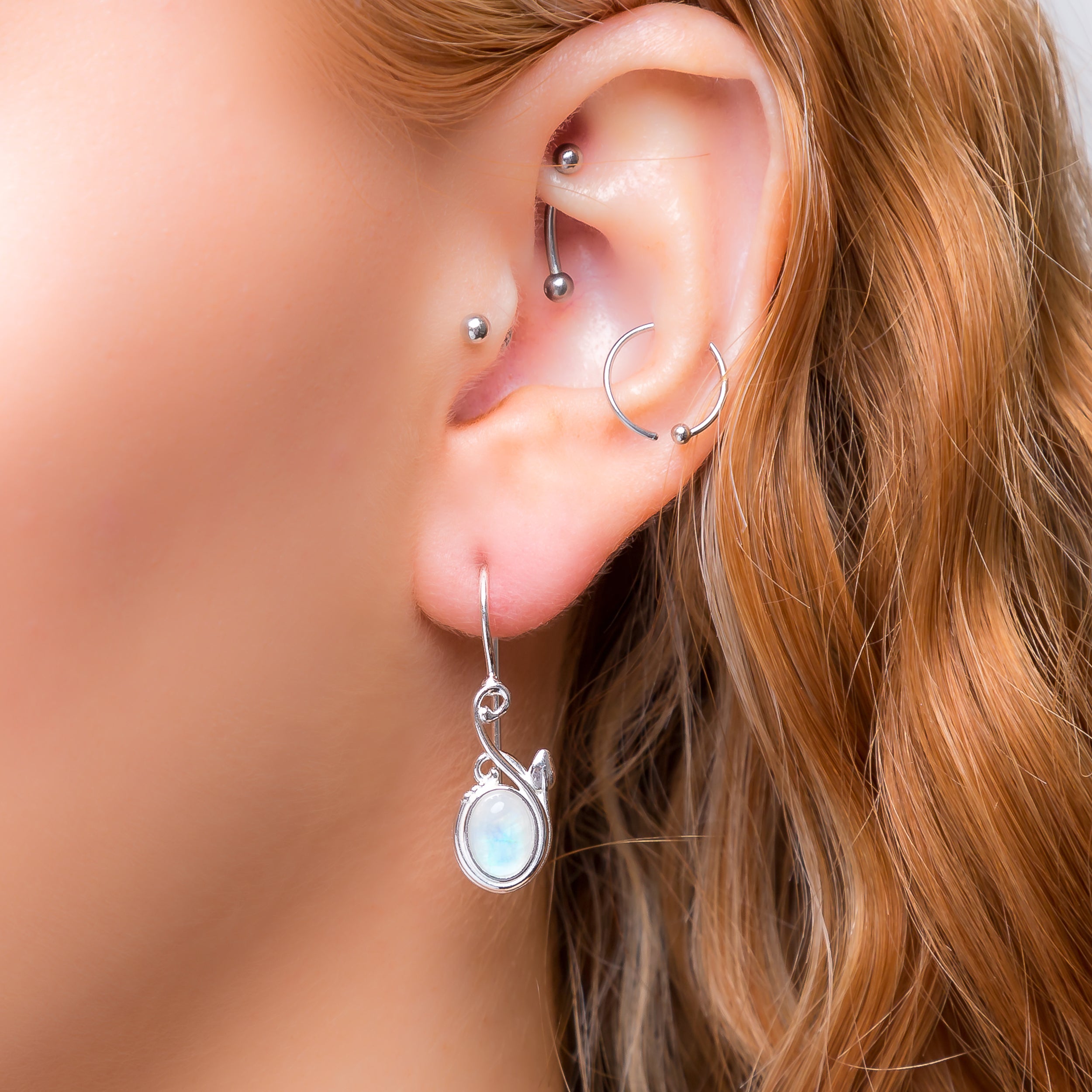 Leaf Motif Hook Earrings in Silver and Moonstone