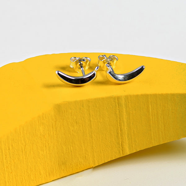 Handcrafted in Sterling Silver, each earring depicts a classic banana shape to remind you of this bright fruit. Complete with stem post and butterfly backing.