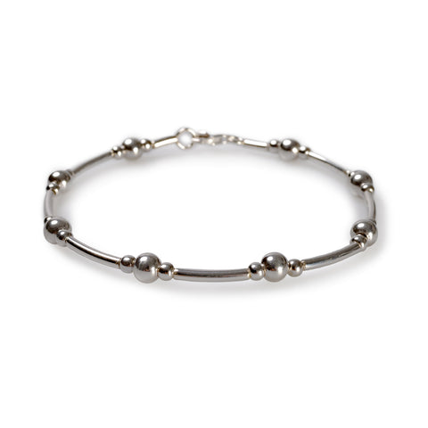 Vintage Style Link Bracelet in Silver and Cognac Amber