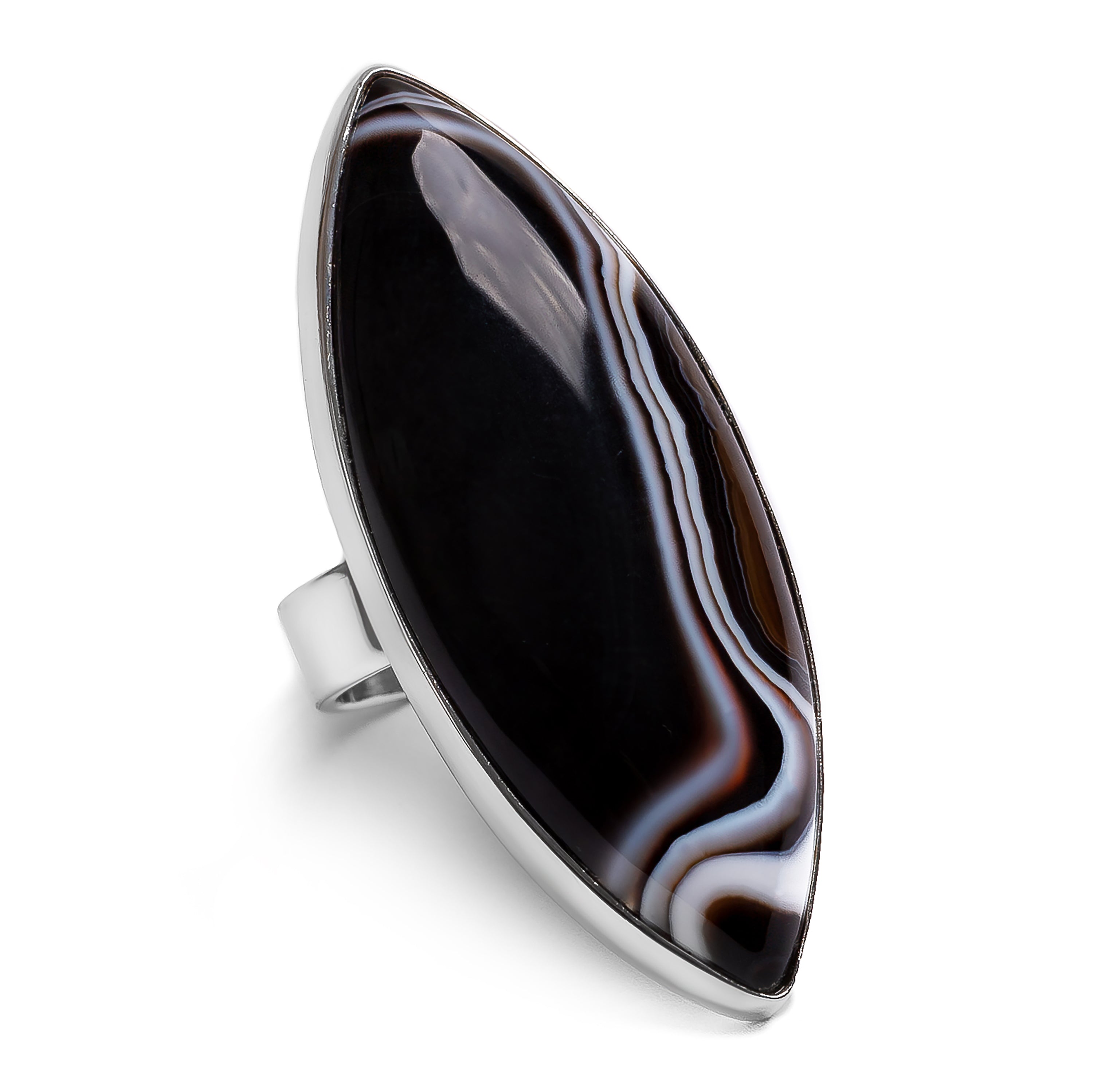 Explore the fascinating world of Botswana Agate with our adjustable ring! This natural designer gemstone boasts powerful properties for courage and self-discovery.