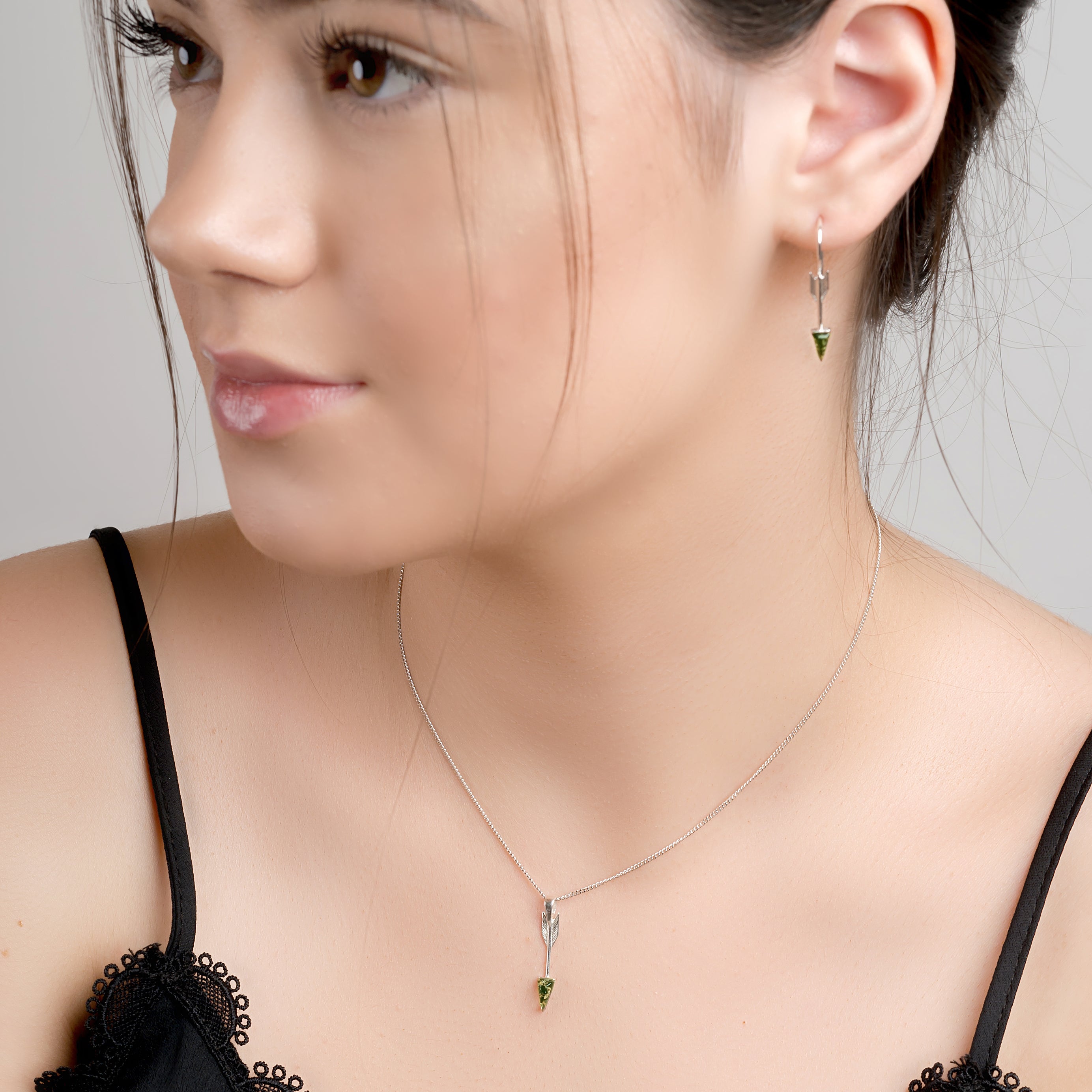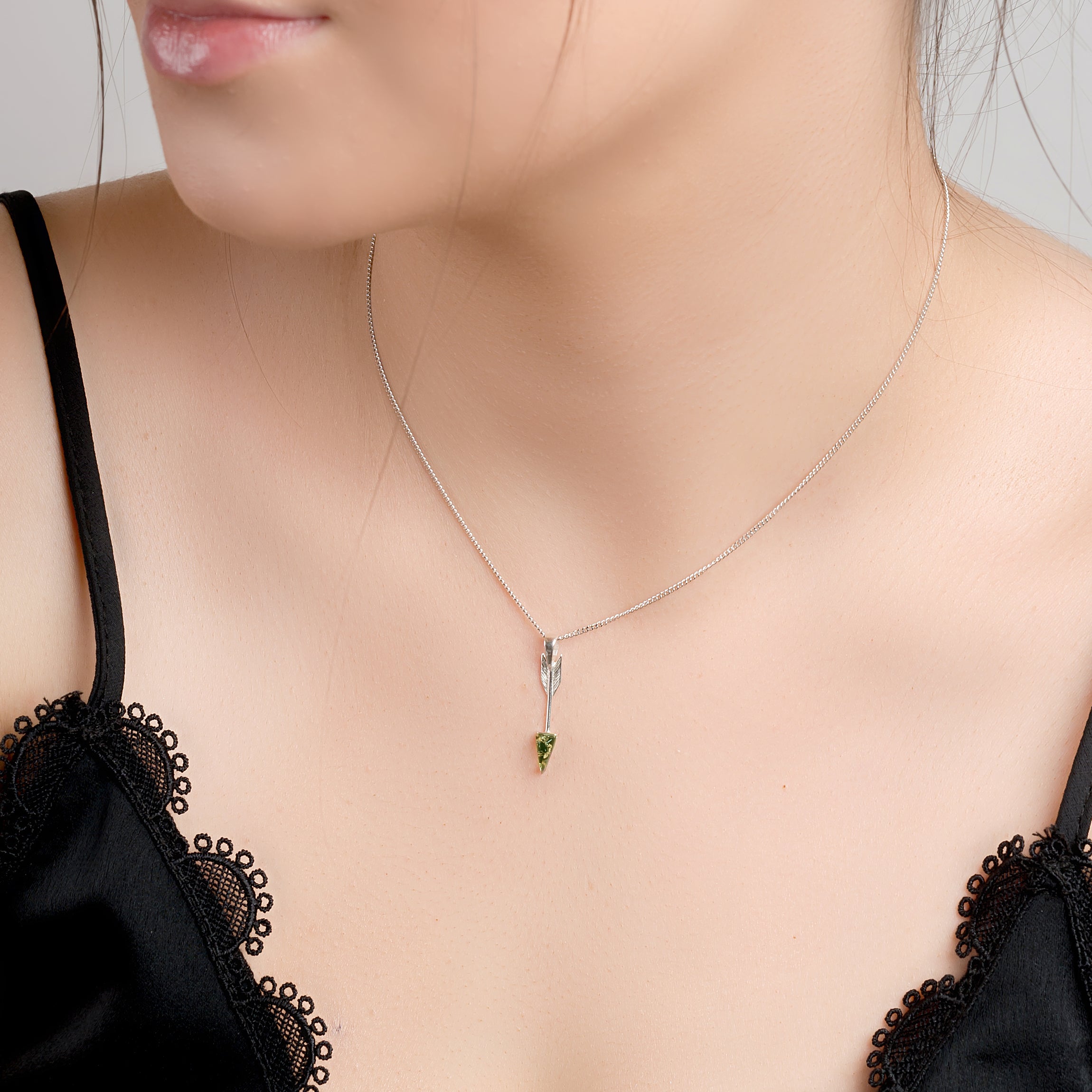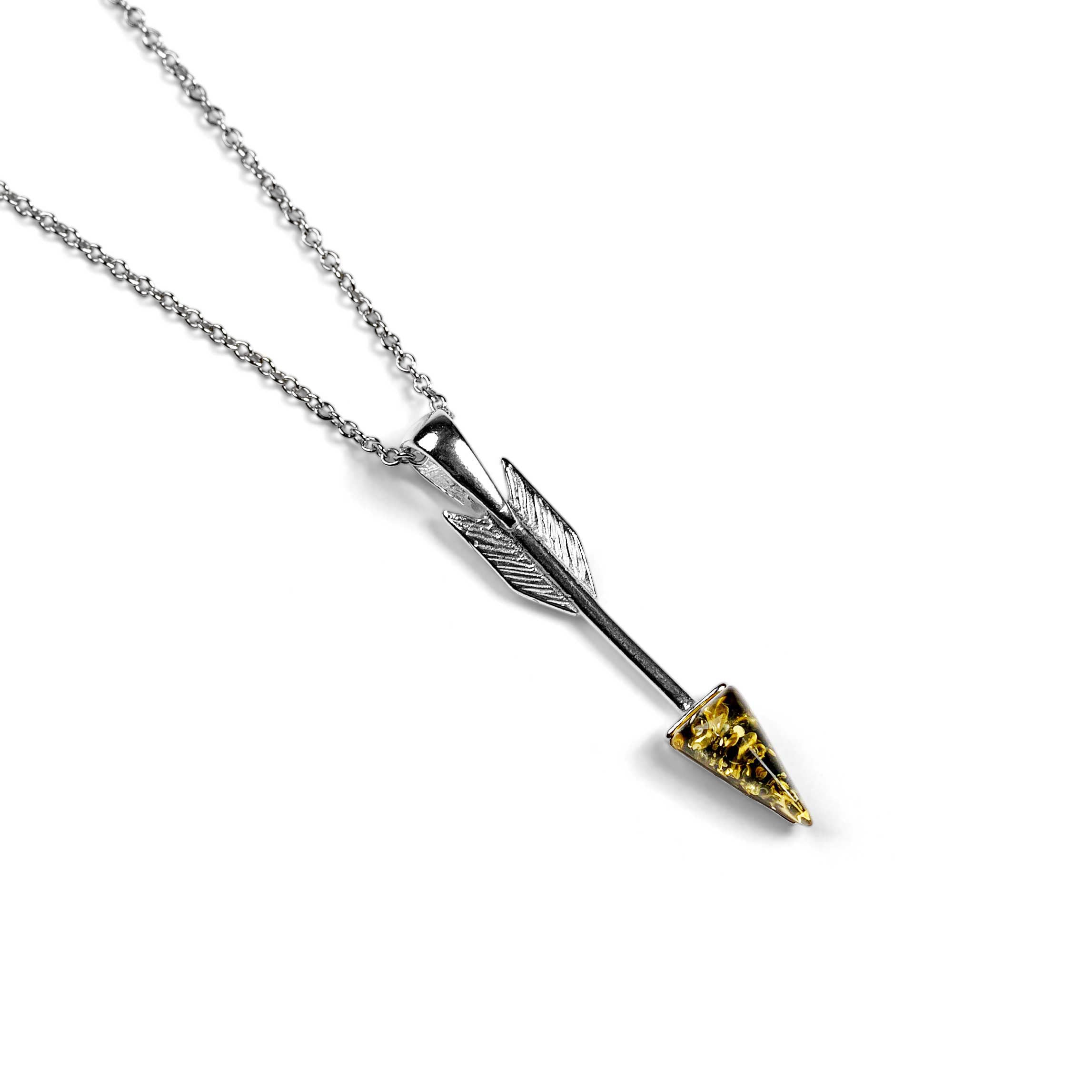 Arrow Necklace in Silver and Green Amber