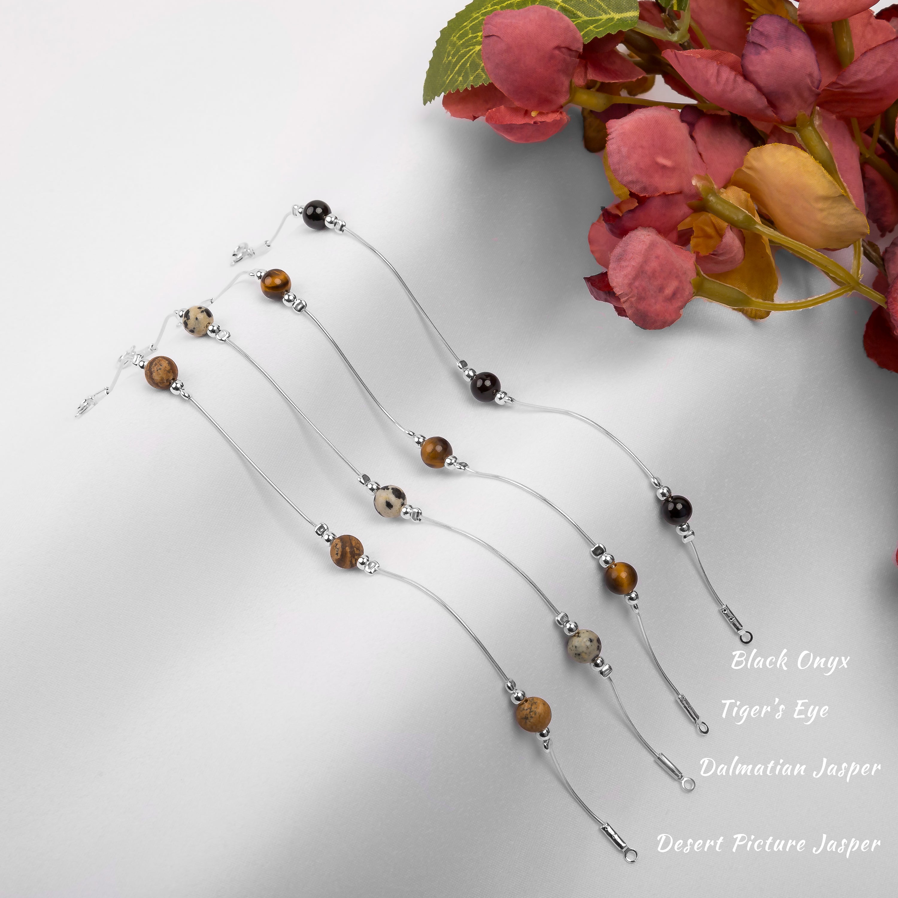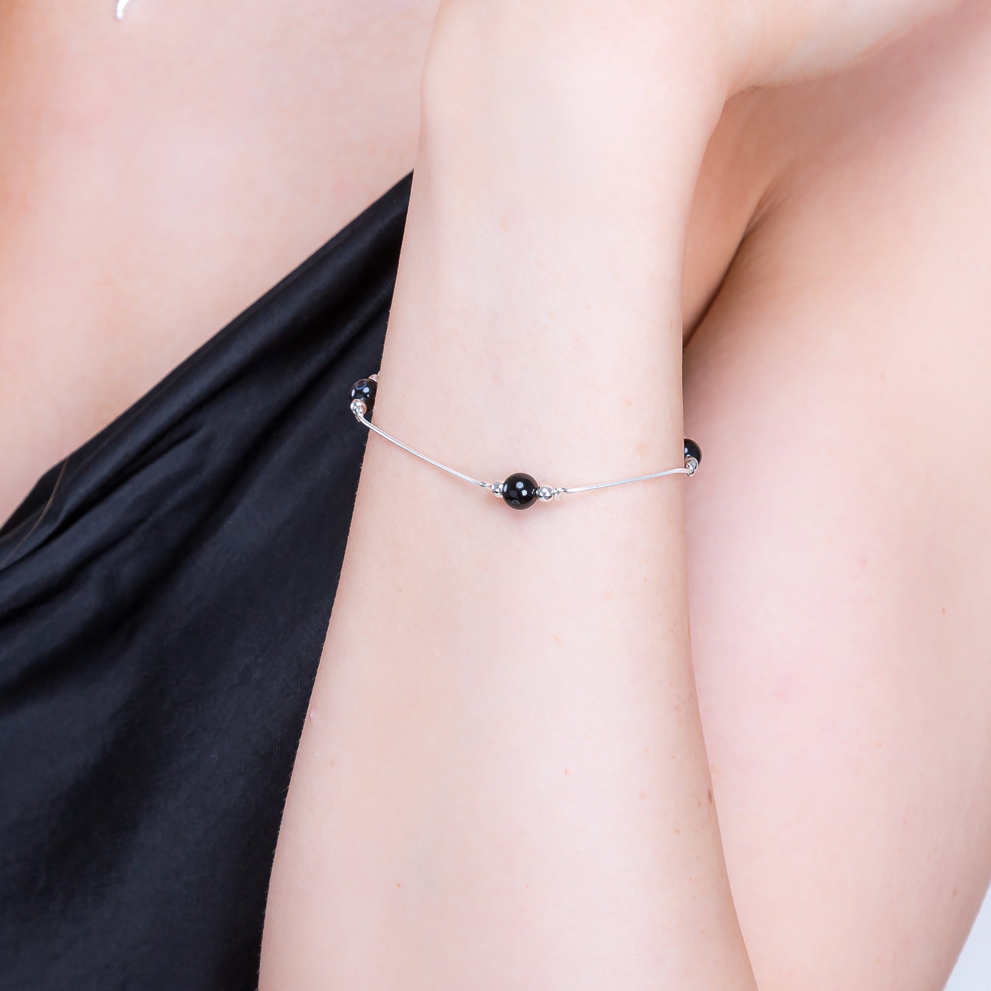 Effortlessly stylish Silver and Black Onyx Bead Bracelet.