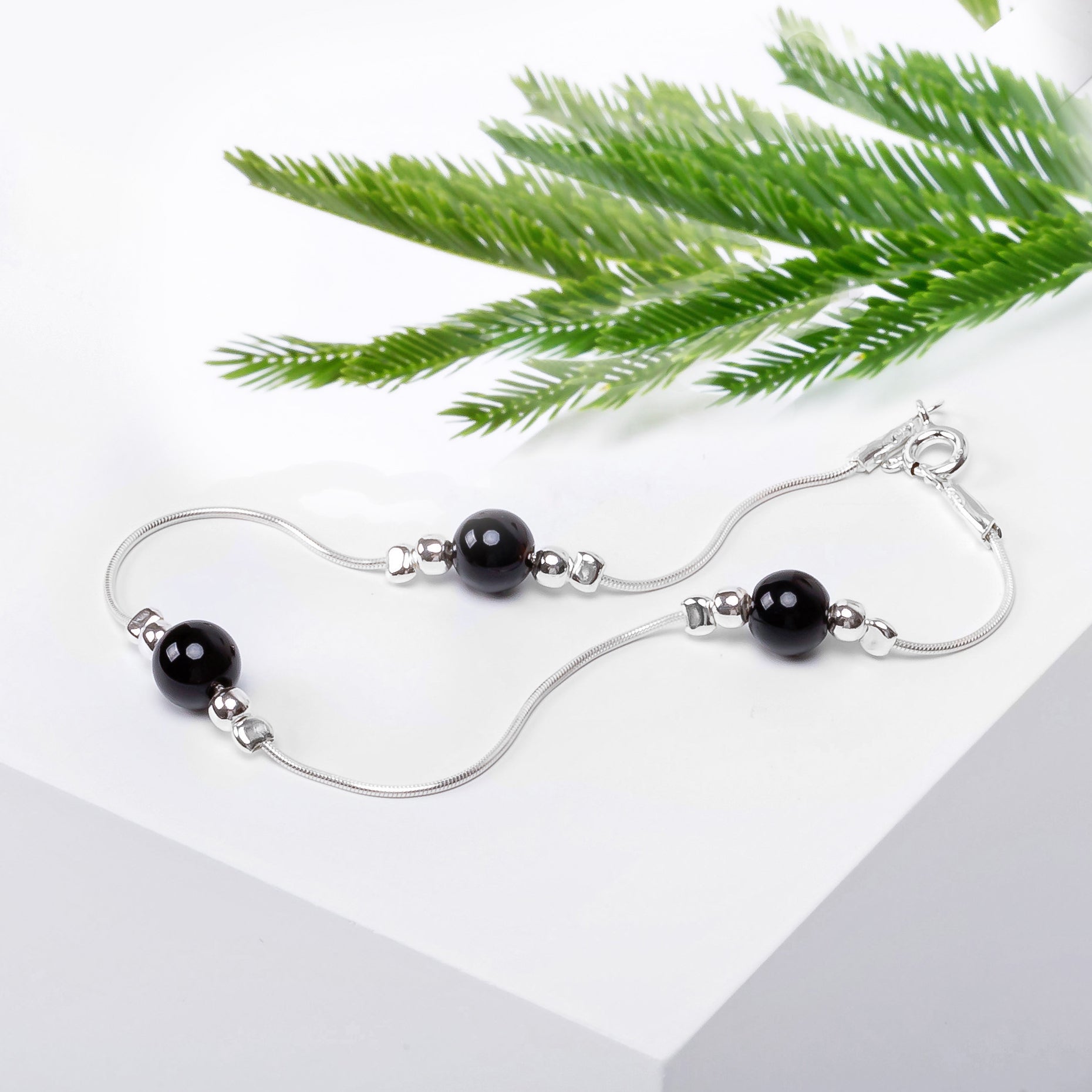 Handcrafted in 925 silver with 3 Black Onyx stones spaced evenly across a solid silver snake chain. Finished with miniature silver balls either side of each stone to complete this must have jewellery staple.