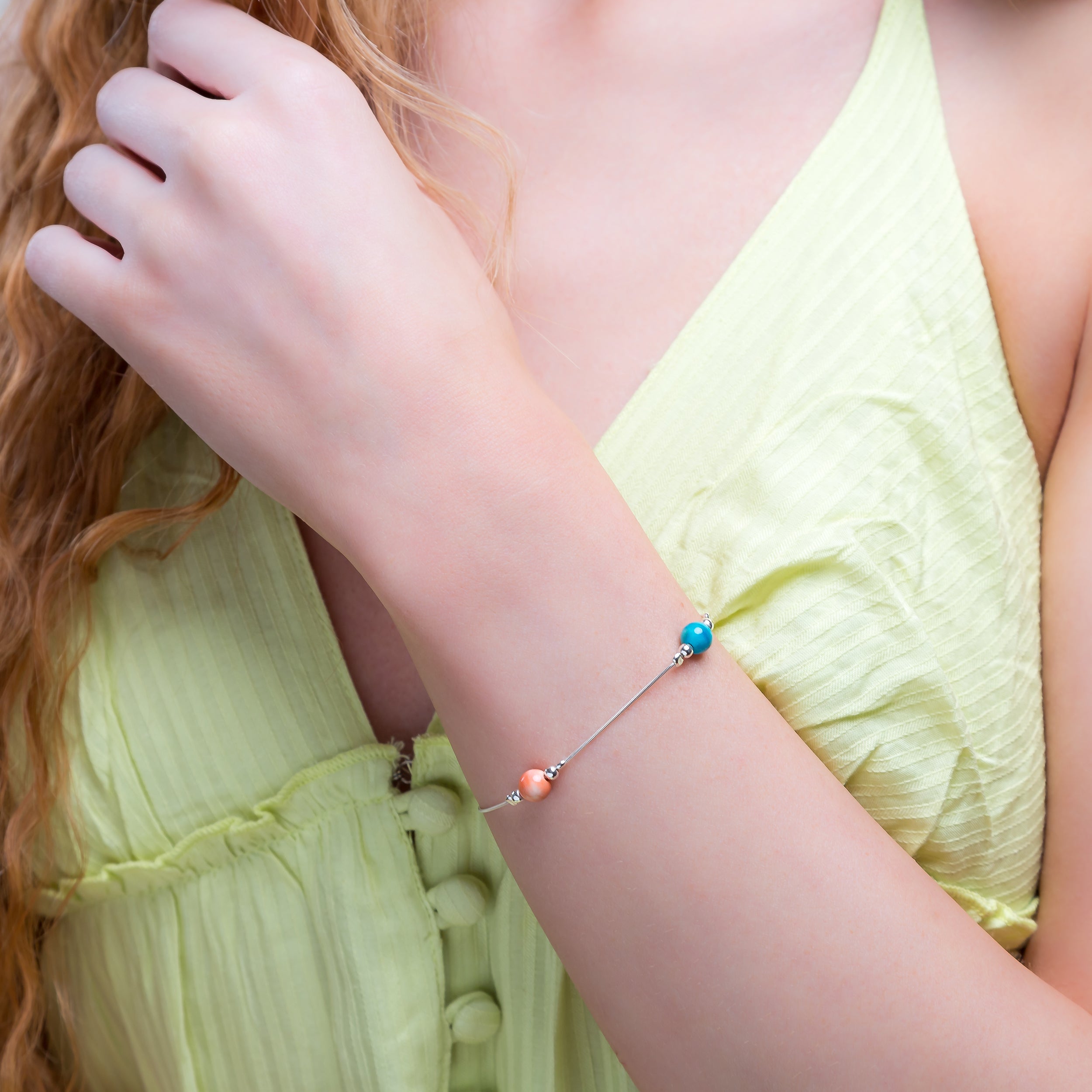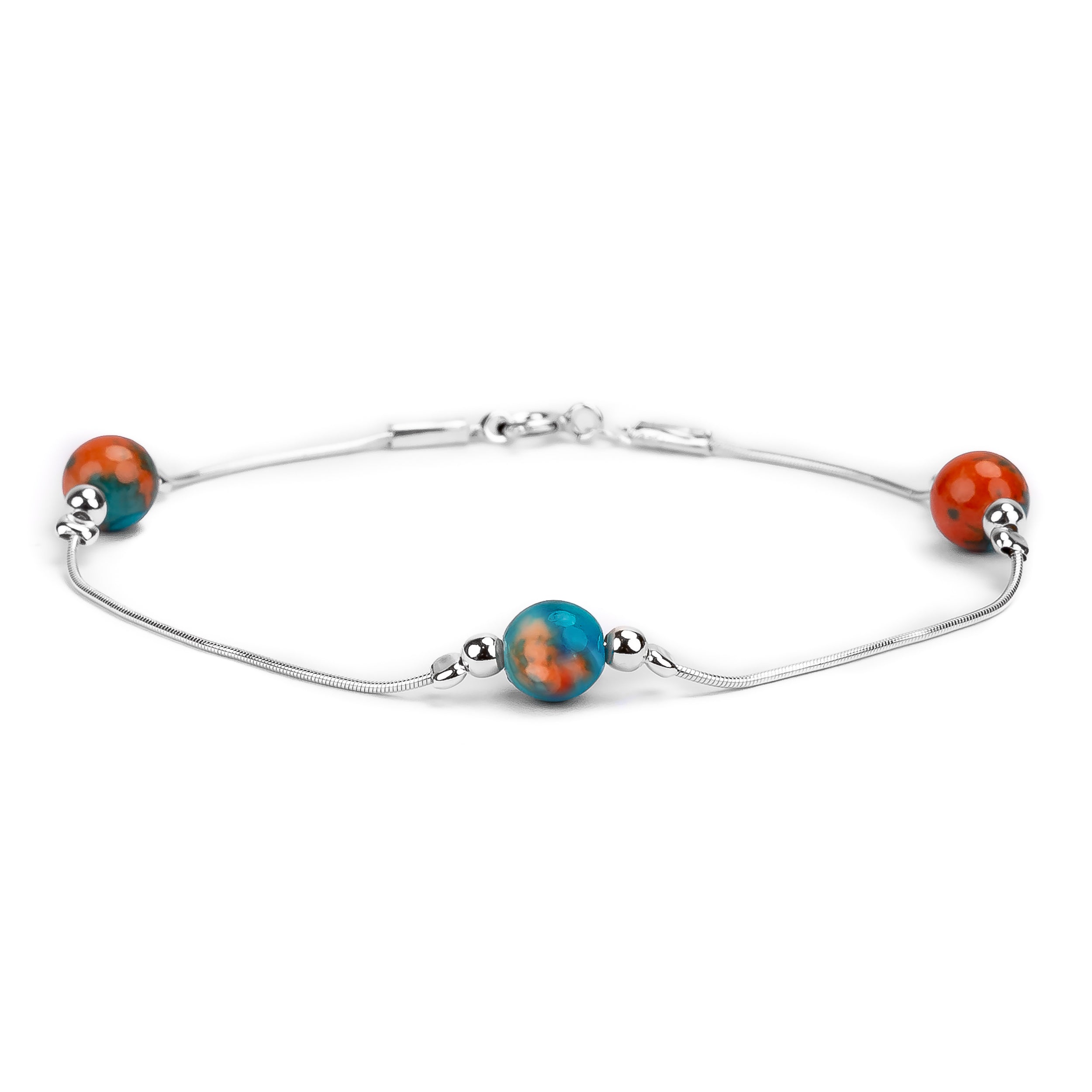 Bead Bracelet in Silver and Copper Turquoise