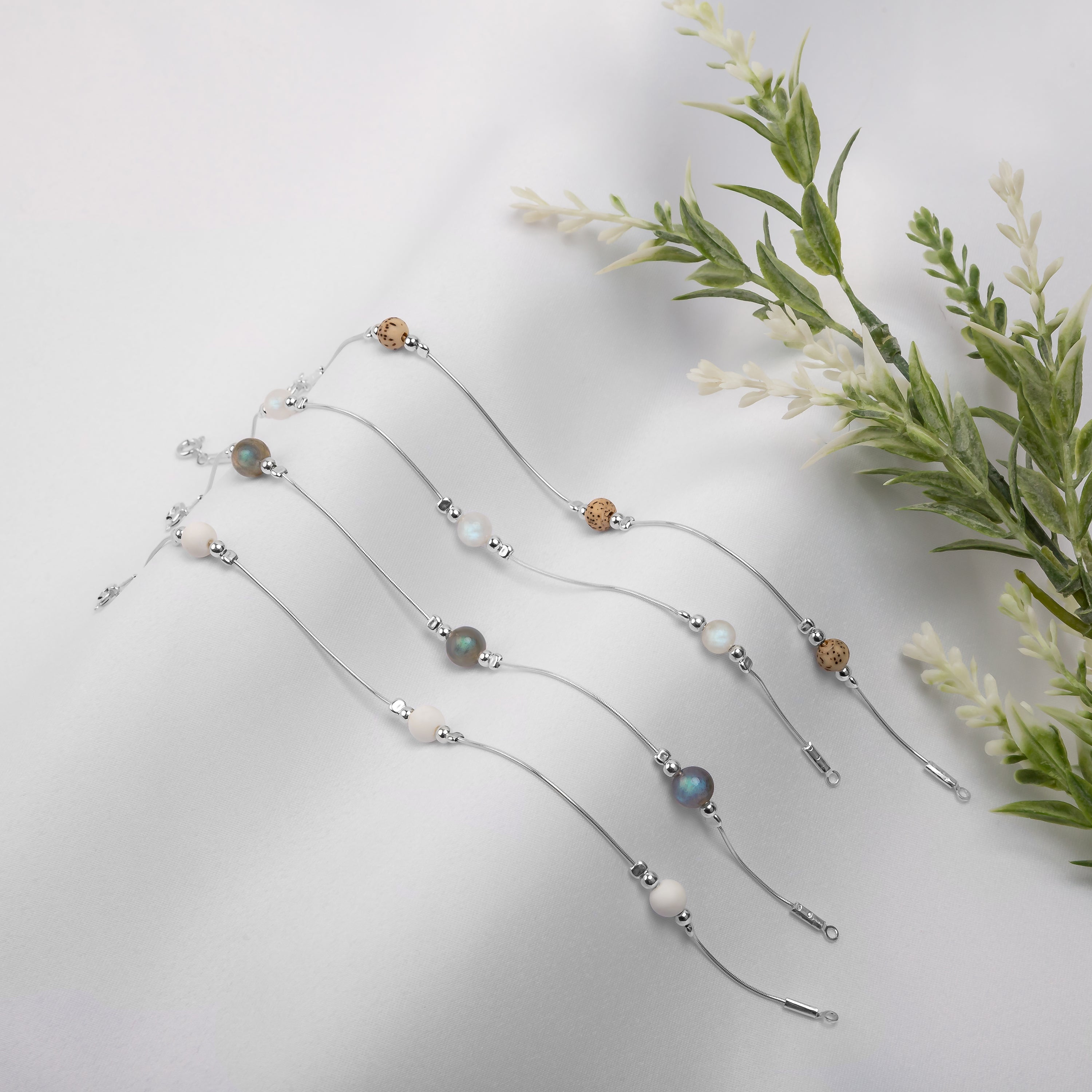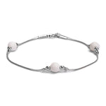 Handcrafted in 925 silver with 3 White Shell beads spaced evenly across a solid silver snake chain. Finished with miniature silver balls either side of each stone to complete this must have jewellery staple.
