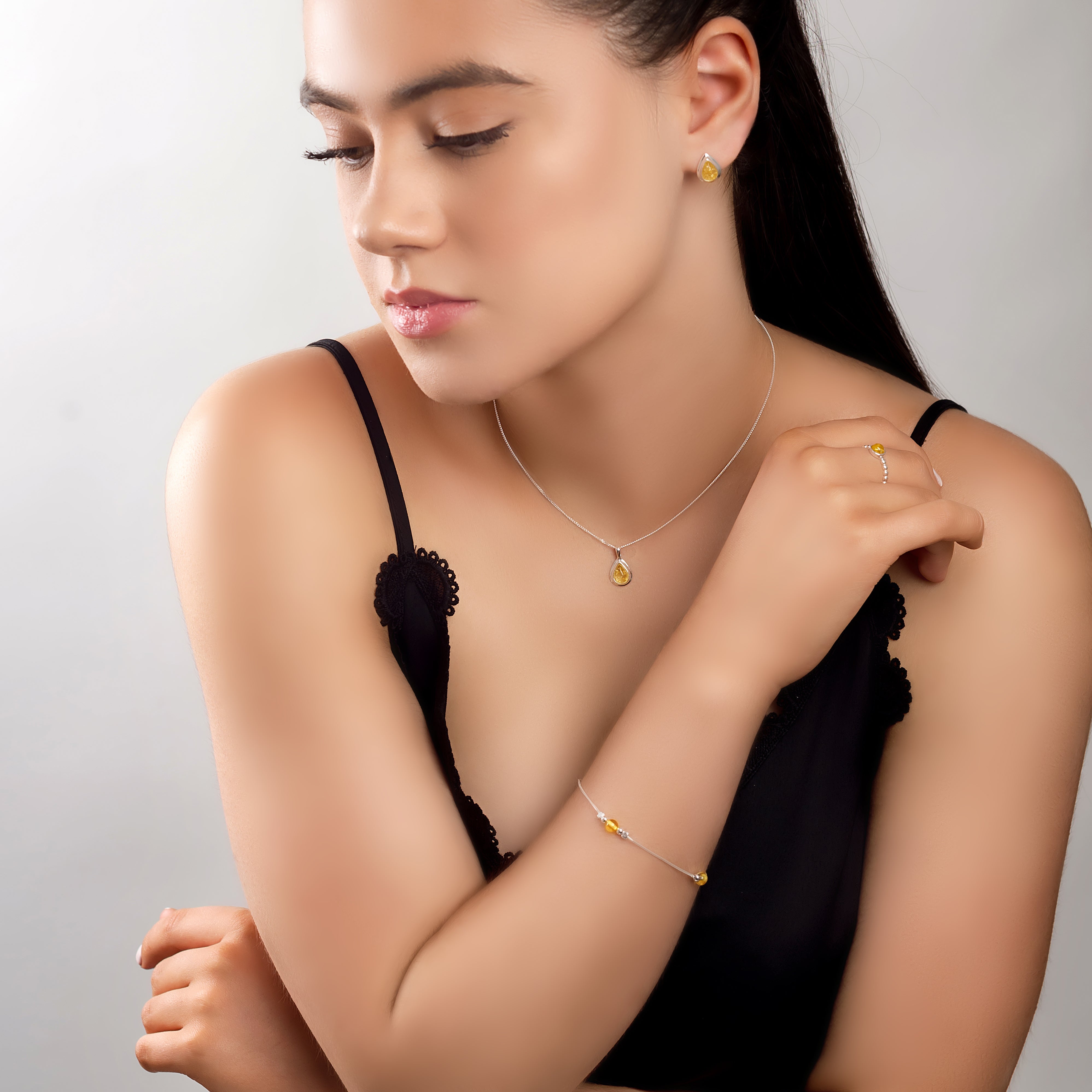 Bead Bracelet in Silver and Yellow Amber