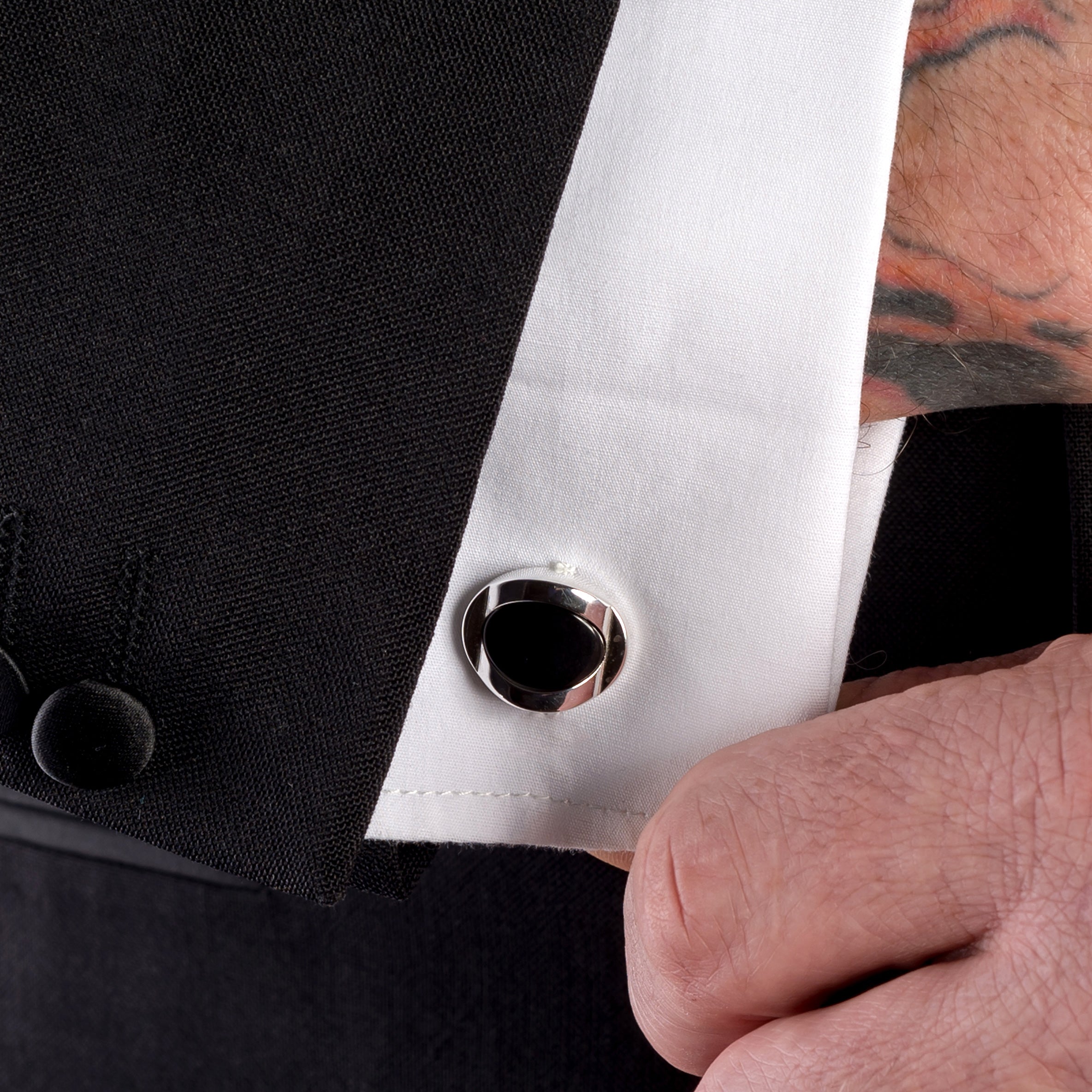 Chunky Oval Centre Cufflinks in Silver and Cherry Amber