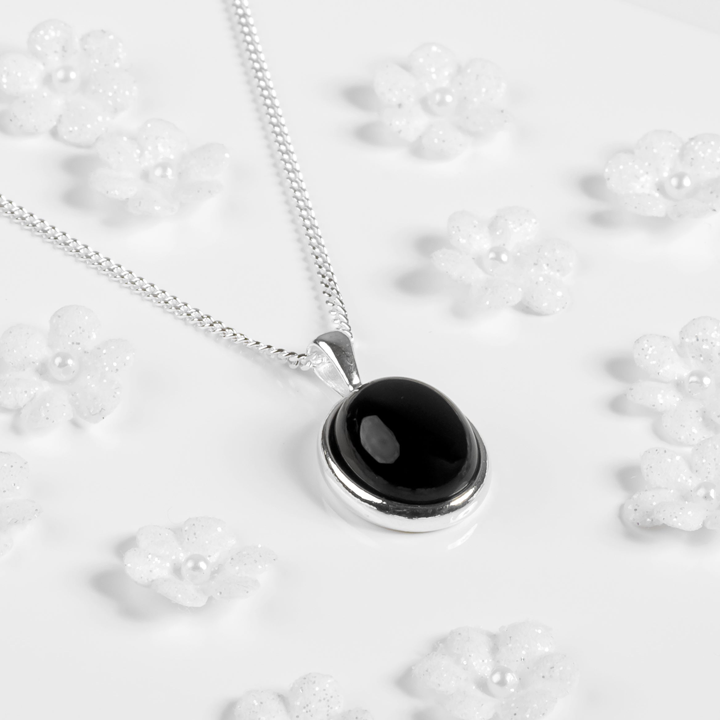 Handcrafted in 925 Sterling Silver and featuring a sublime oval shaped natural Black Onyx gemstone which is framed in a smooth silver mount. Complete with a solid silver chain in a length of your choosing so you can wear how you like.