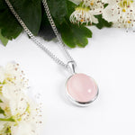 Handcrafted in 925 Sterling Silver and featuring a sublime oval shaped natural Rose Quartz gemstone which is framed in a smooth silver mount. Complete with a solid silver chain in a length of your choosing so you can wear how you like.