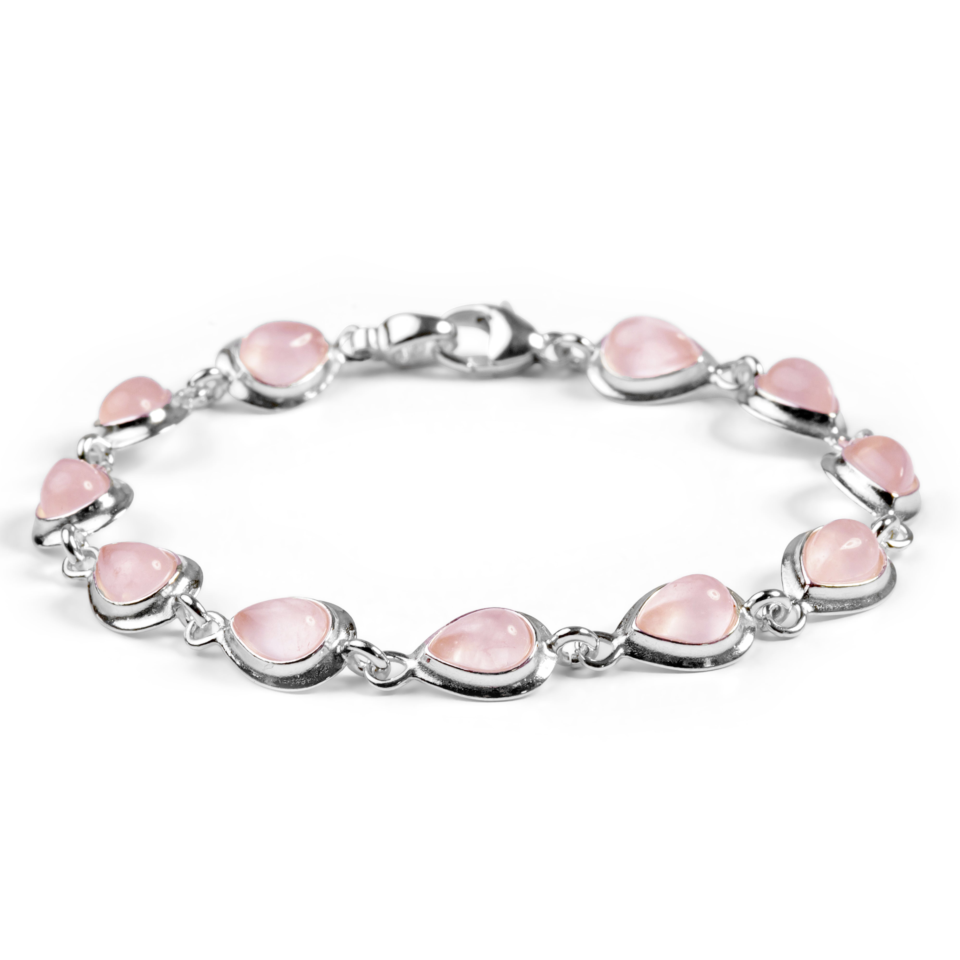 Add sophisticated style to your look with our Silver & Rose Quartz Teardrop Link Bracelet.