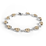 Add sophisticated style to your look with our Silver with 24ct Gold & Dalmatian Jasper Teardrop Link Bracelet.