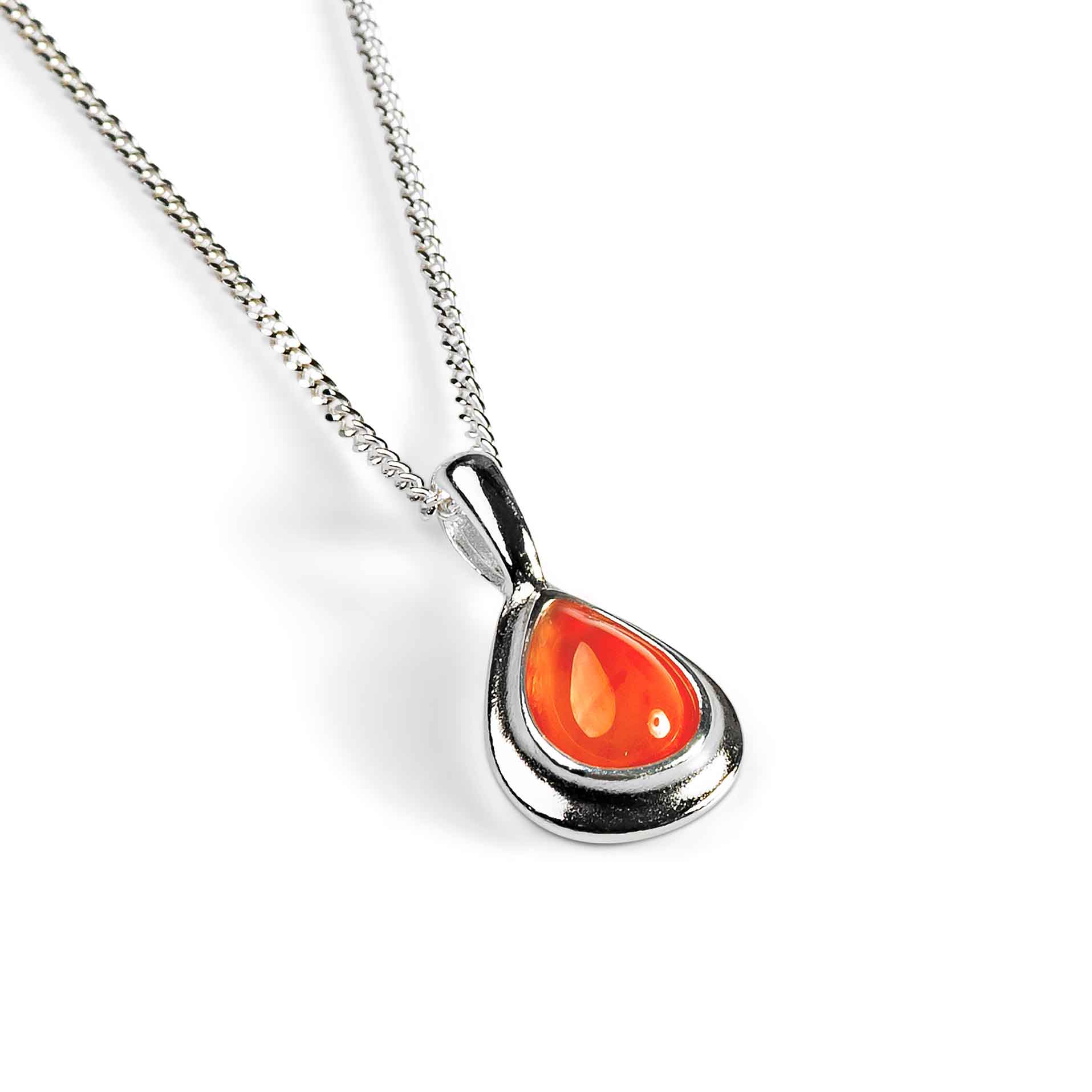 Crafted in a teardrop shape, the vibrant orange Carnelian gemstone is set into a 925 Sterling Silver mount. With a solid silver chain, it completes this necklace perfectly to suit every occasion.
