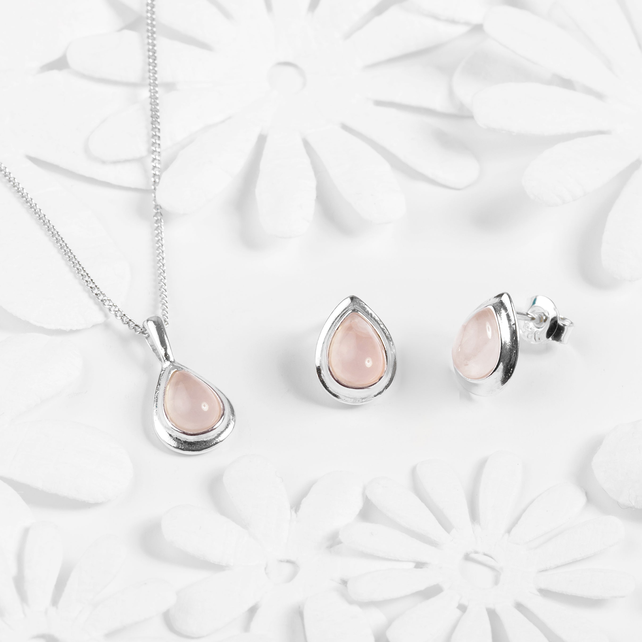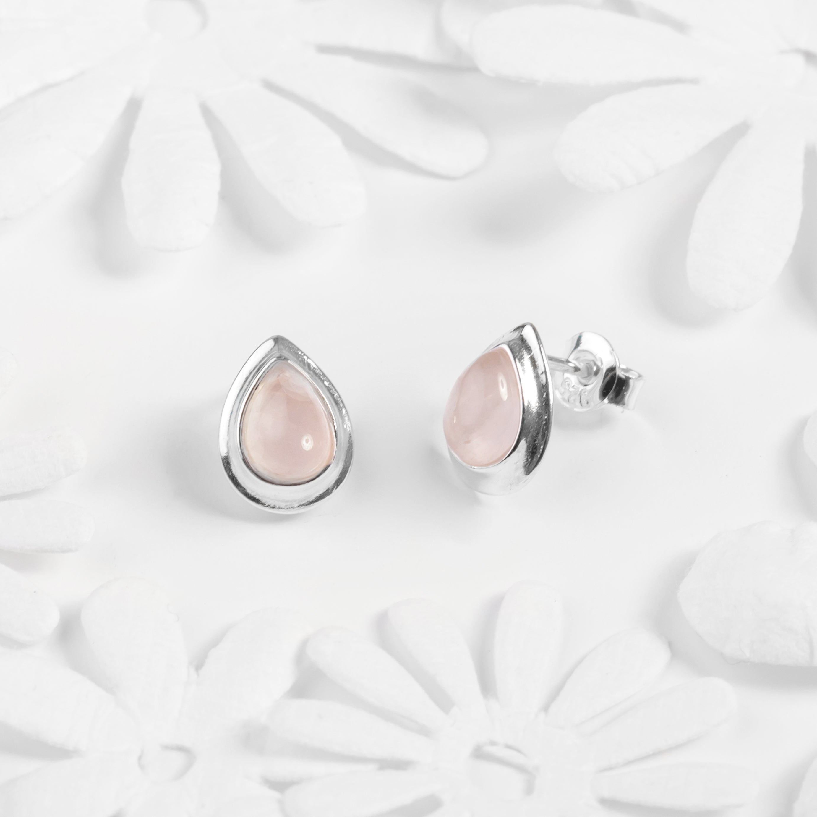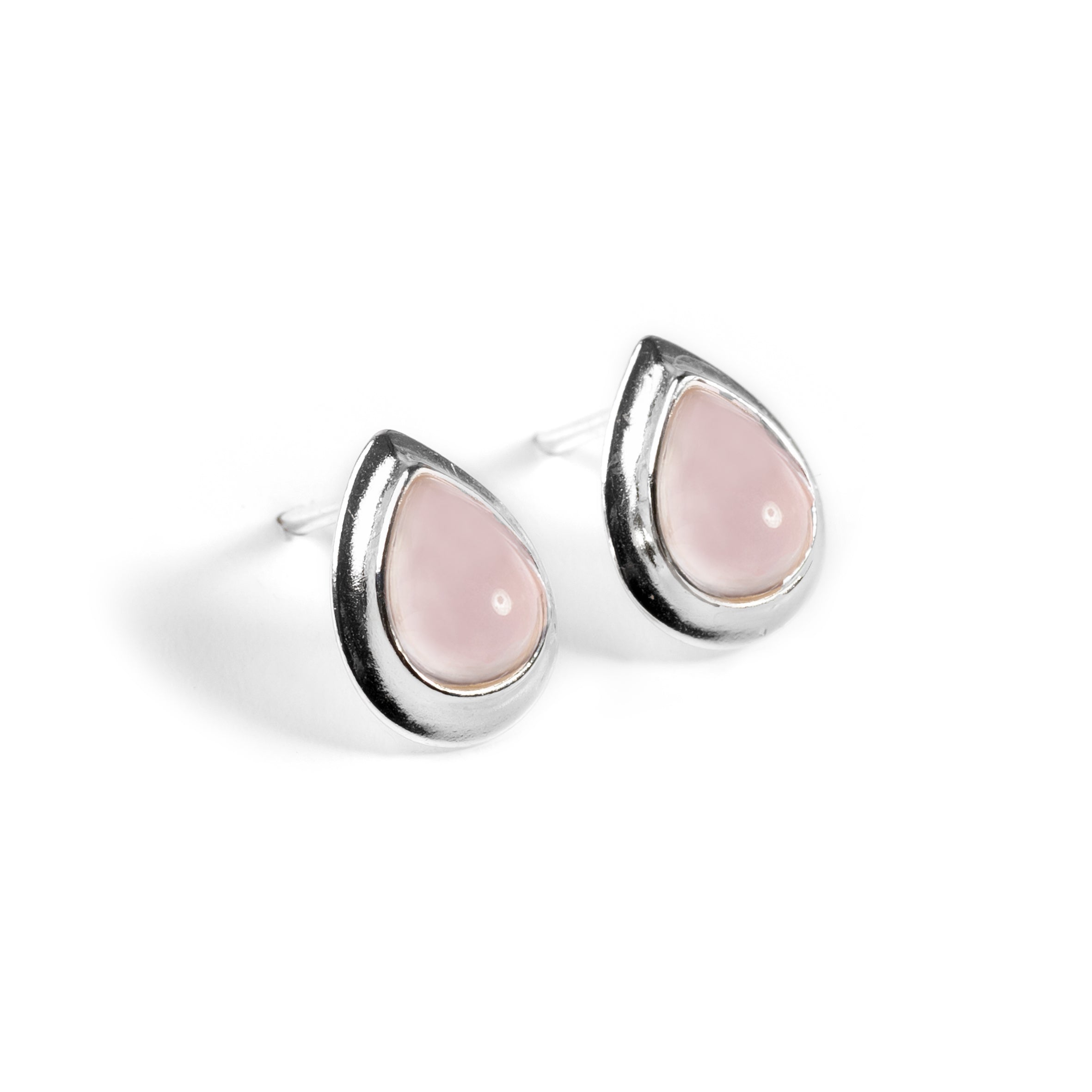 Classic Teardrop Stud Earrings in Silver and Rose Quartz