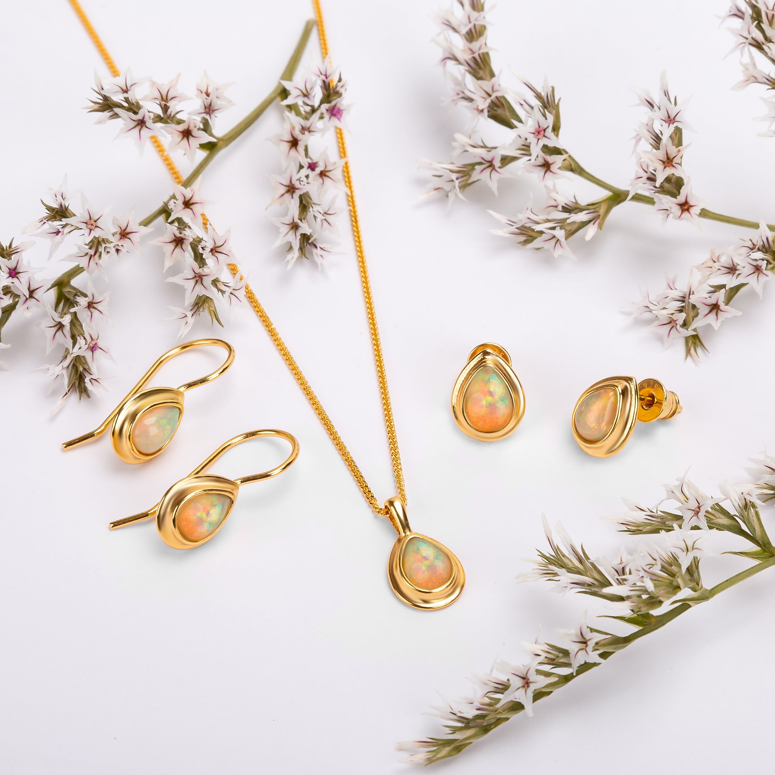 Crafted in solid 925 silver with 24ct Gold, each earring has a single teardrop shaped shimmering Ethiopian Opal. With a solid silver stem, secure butterfly back and delicate design, these earrings are perfect of all day wearing.