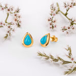 Crafted in 925 silver with 24ct Gold, each earring has a single vibrant Turquoise stone which has been carefully cut into a teardrop shape.