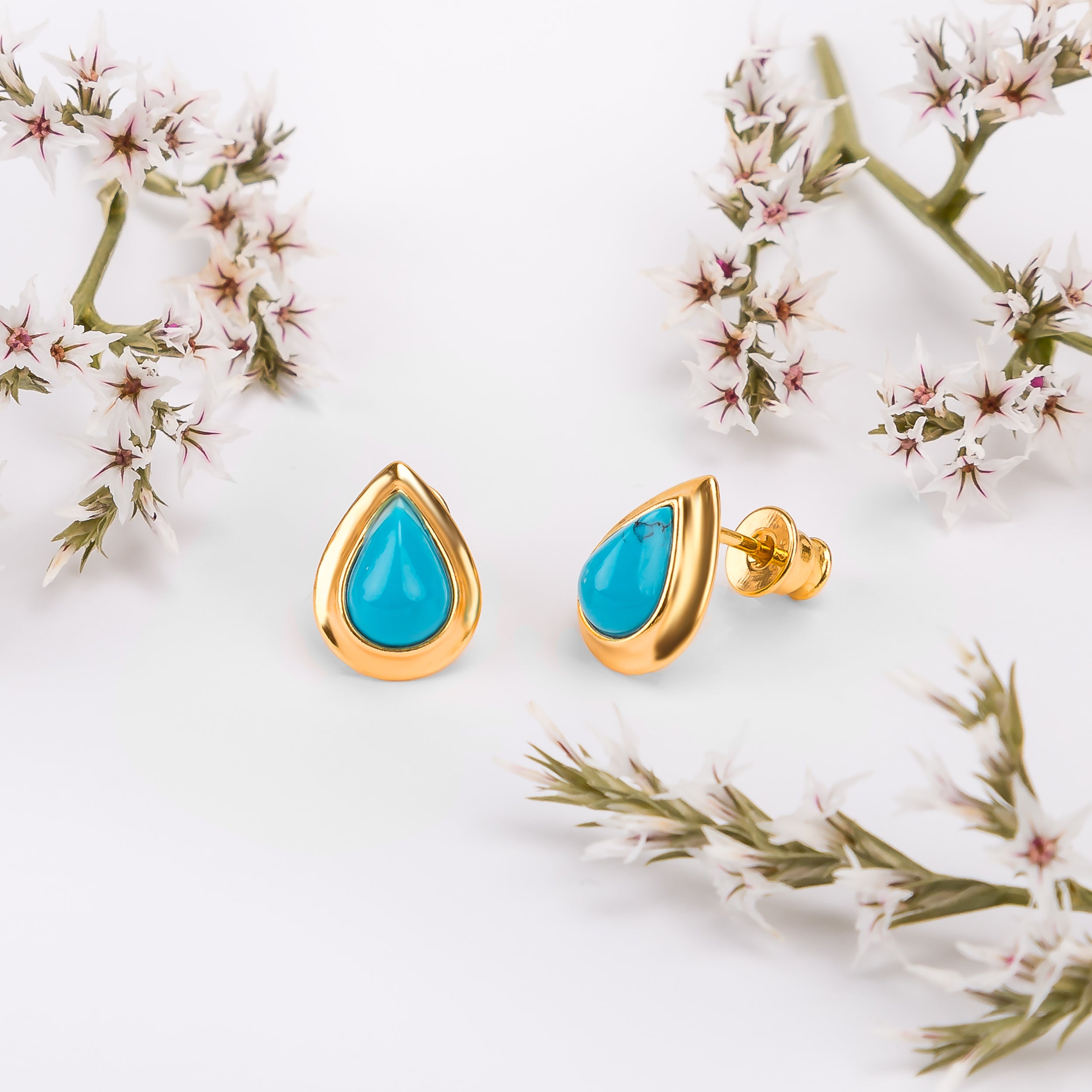 Classic Teardrop Stud Earrings in Silver with 24ct Gold and Turquoise