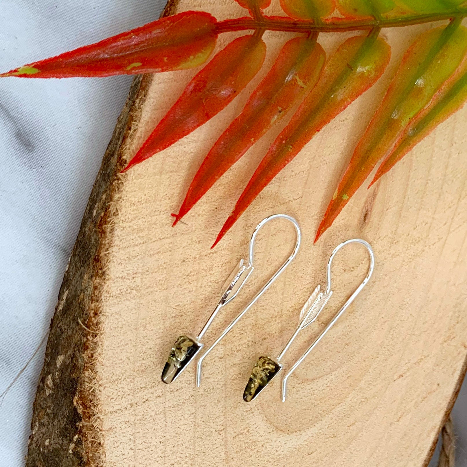 Crafted in 925 silver and adorned with a genuine Baltic Amber gemstone at the tip of the arrow, these earrings make a meaningful coming of age gift. Finished with a long hook fastening for comfortable every day wear.