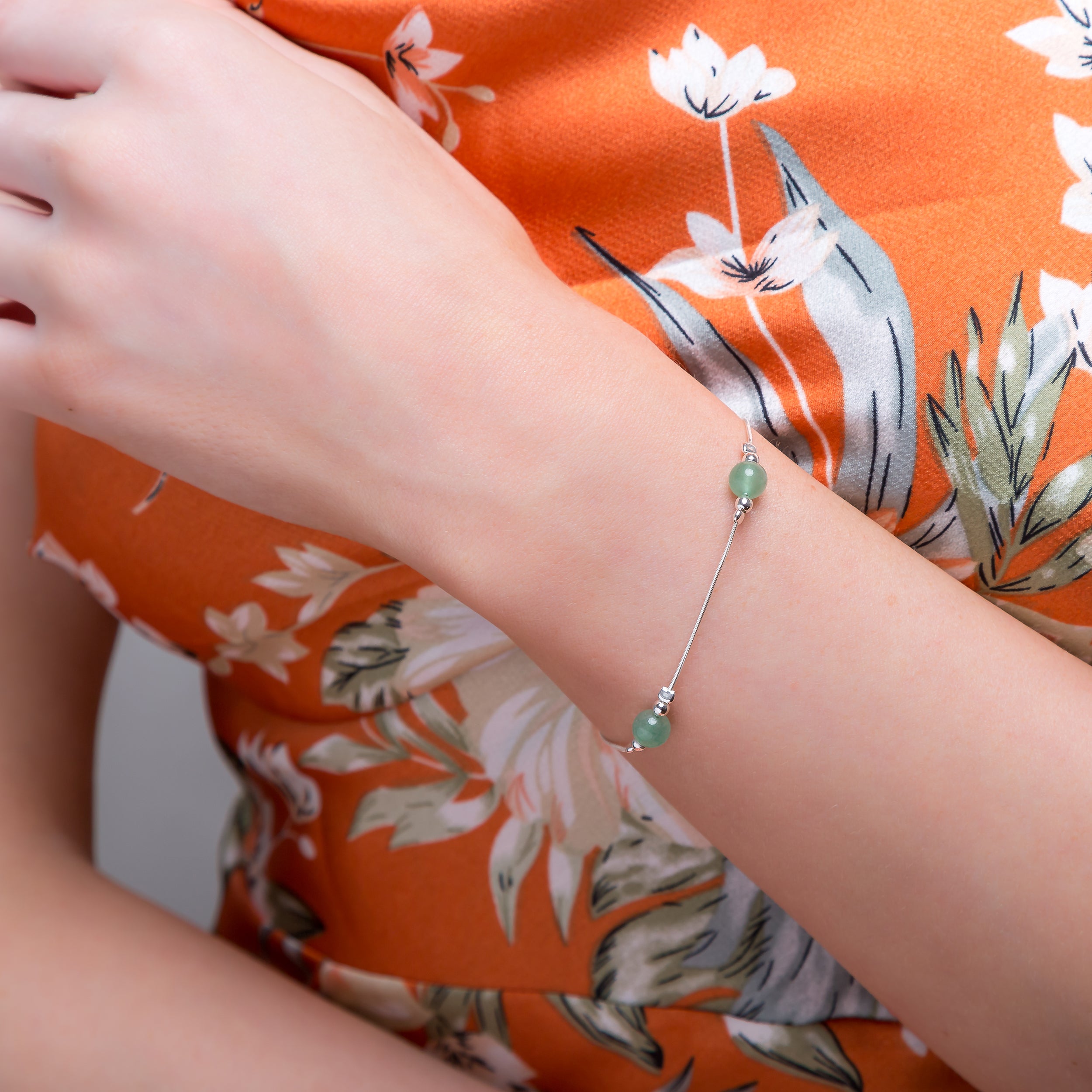 Handcrafted in 925 silver with 3 natural Aventurine gemstones spaced evenly across a solid silver snake chain. Finished with miniature silver balls either side of each stone to complete this must have jewellery staple.