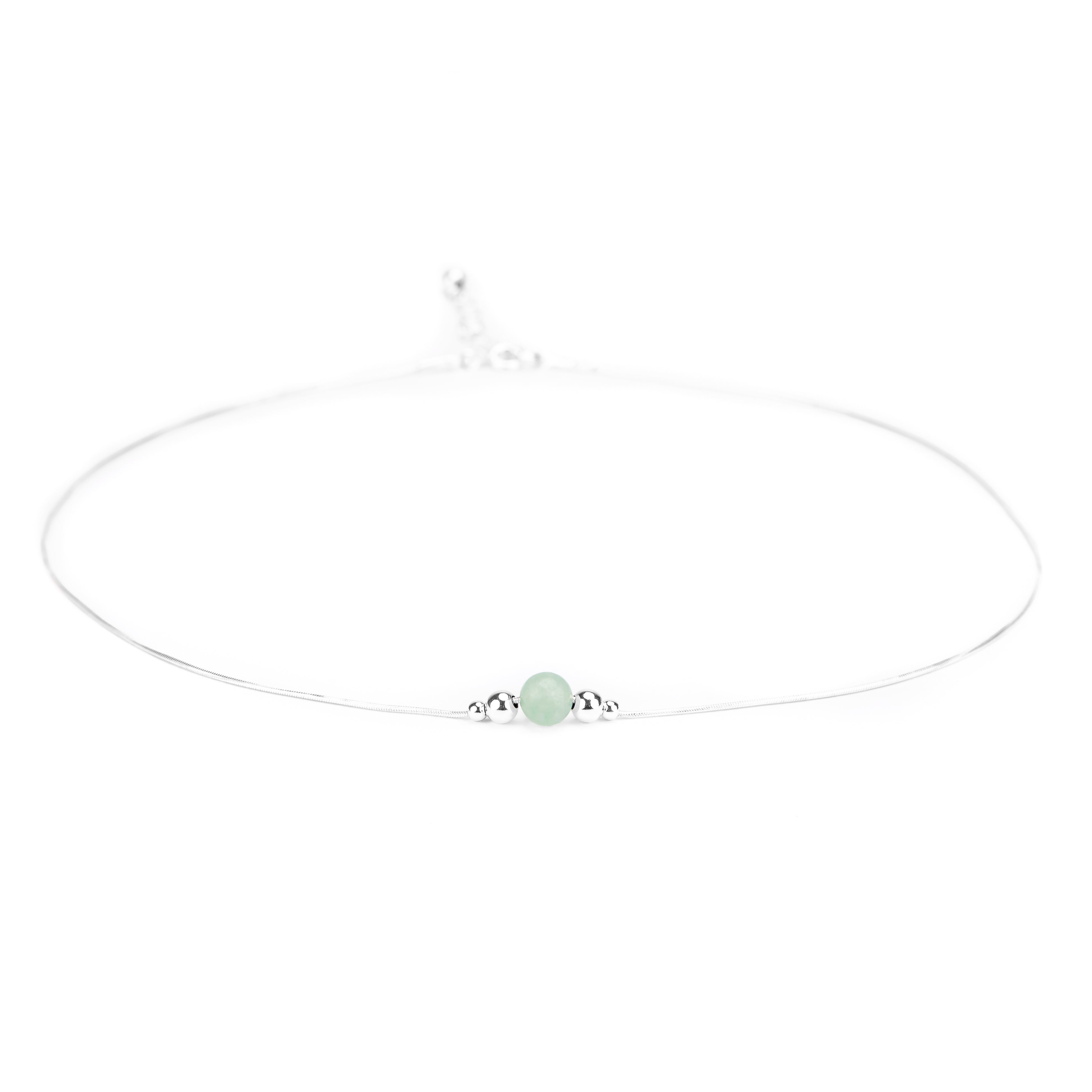 Delicate Single Stone Necklace in Silver and Aventurine
