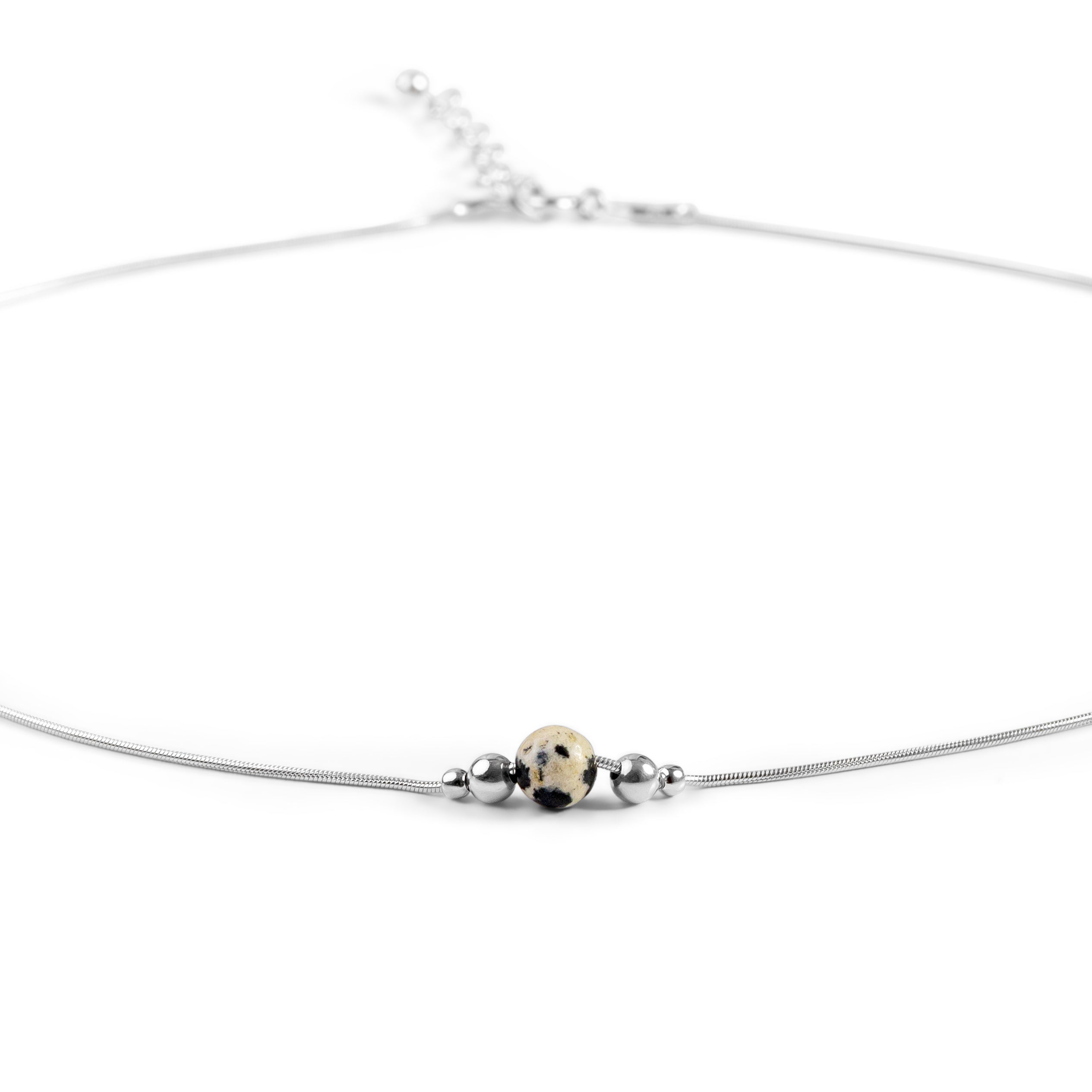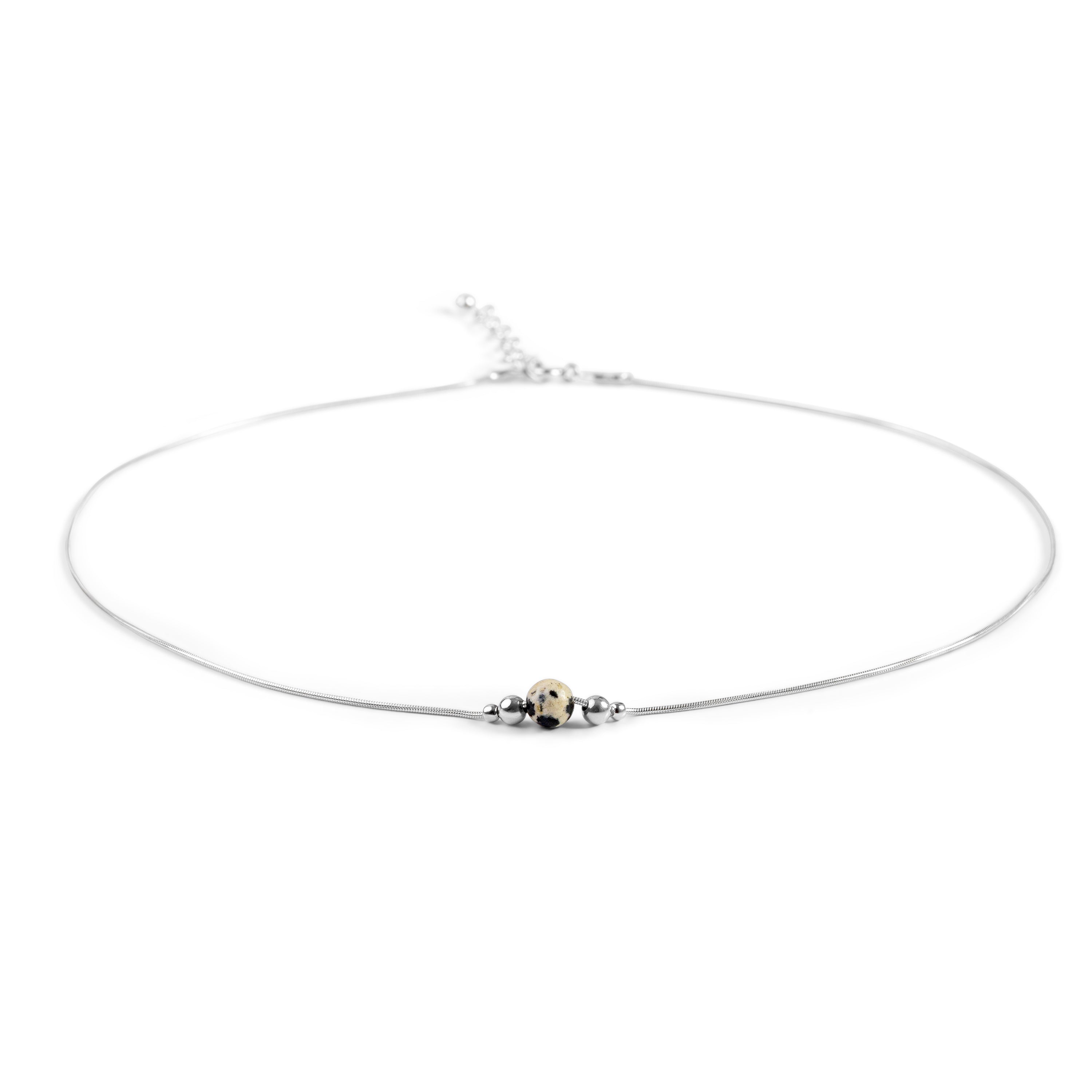 Delicate Single Stone Necklace in Silver and Dalmatian Jasper