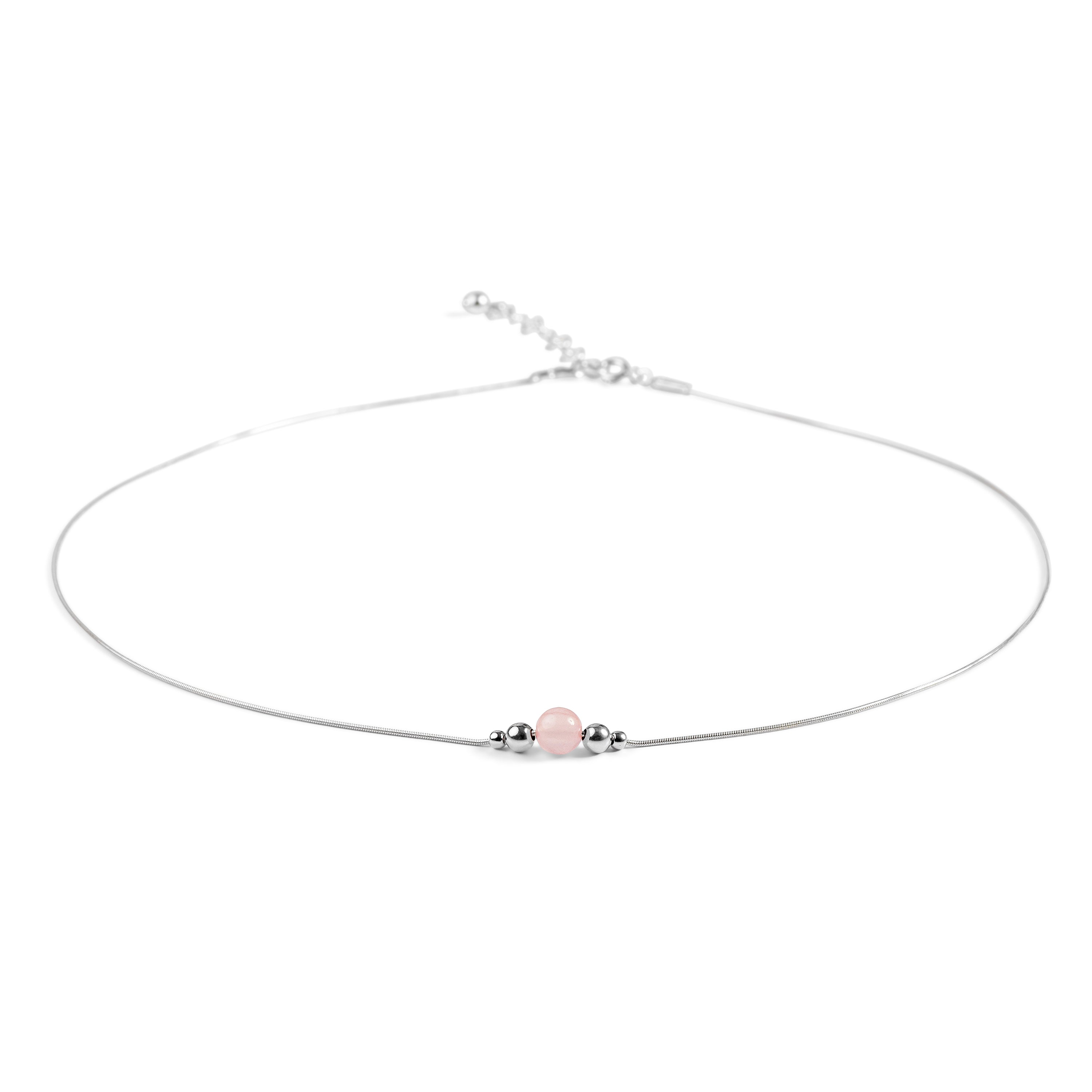 Delicate Single Stone Necklace in Silver and Rose Quartz