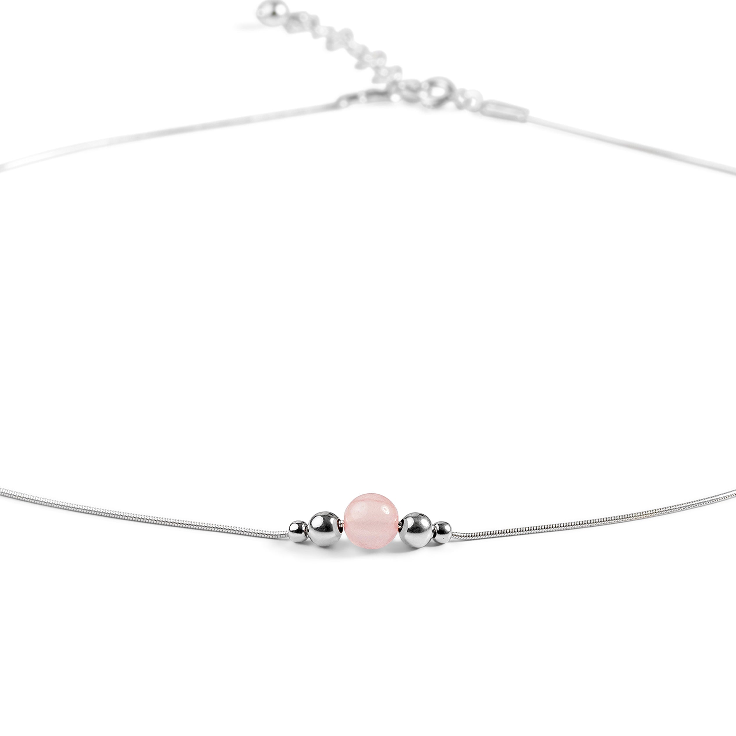 Sophisticated Silver & Rose Quartz Ball Necklace can be worn for any occasion.