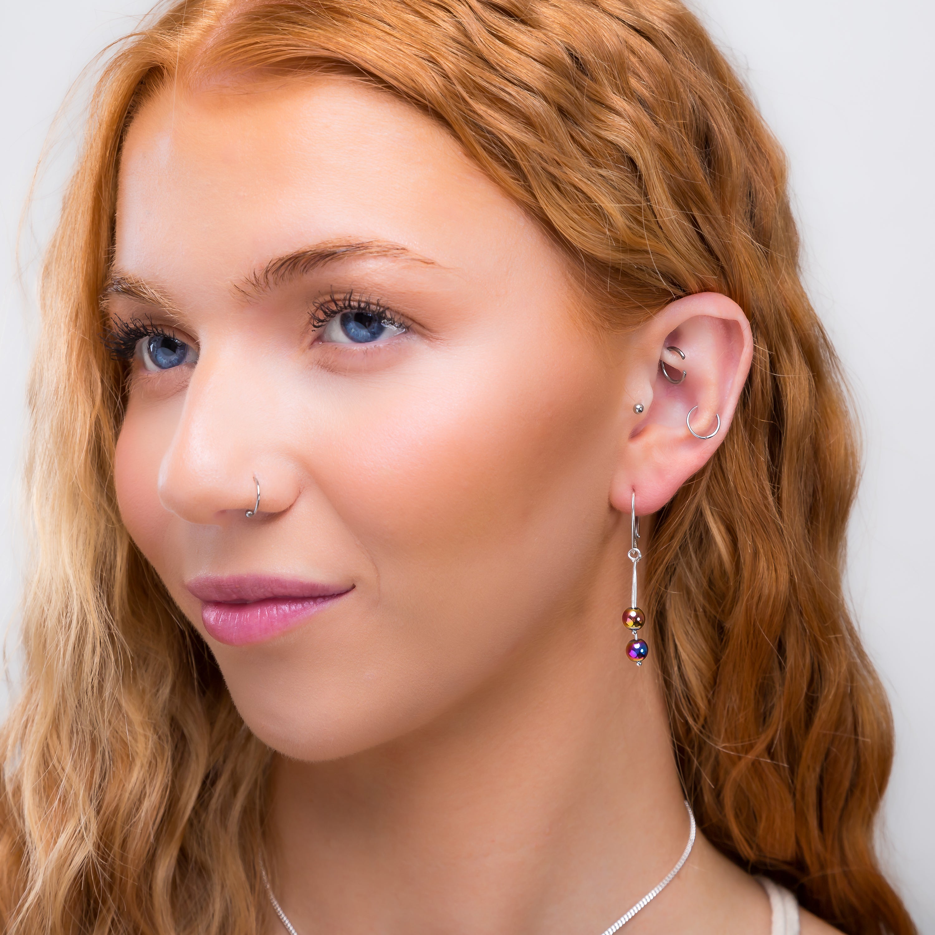 Get that effortless look with our Silver and Rainbow Titanium Double Ball Drop Earrings.