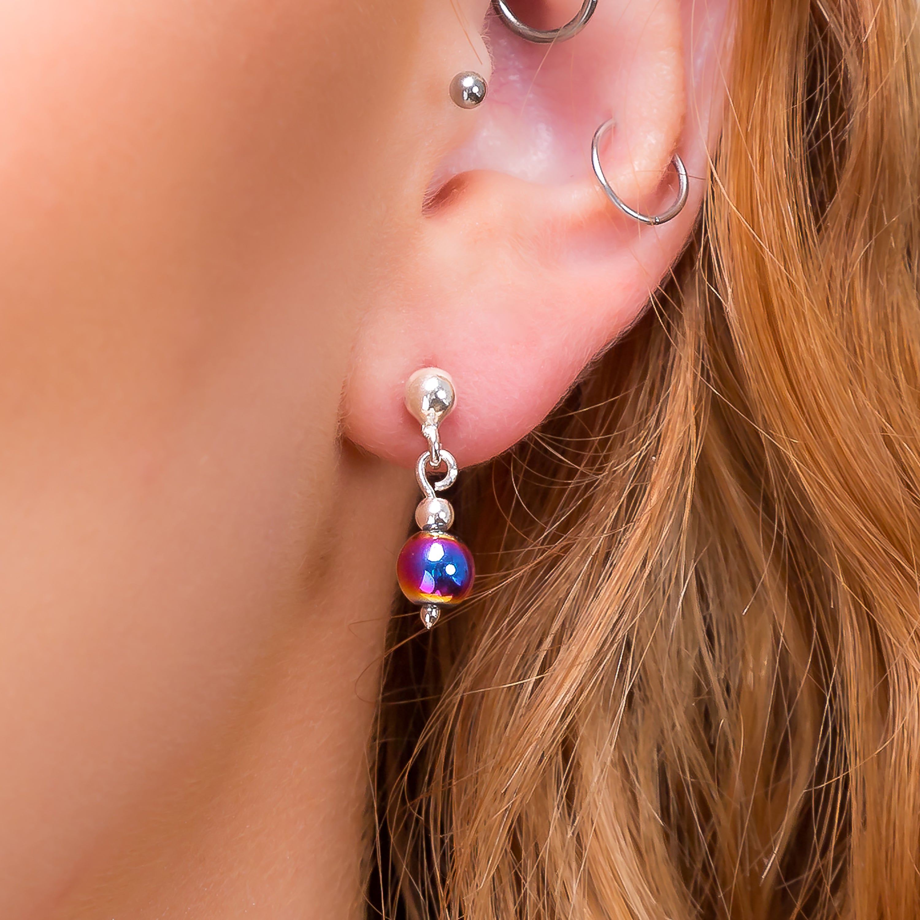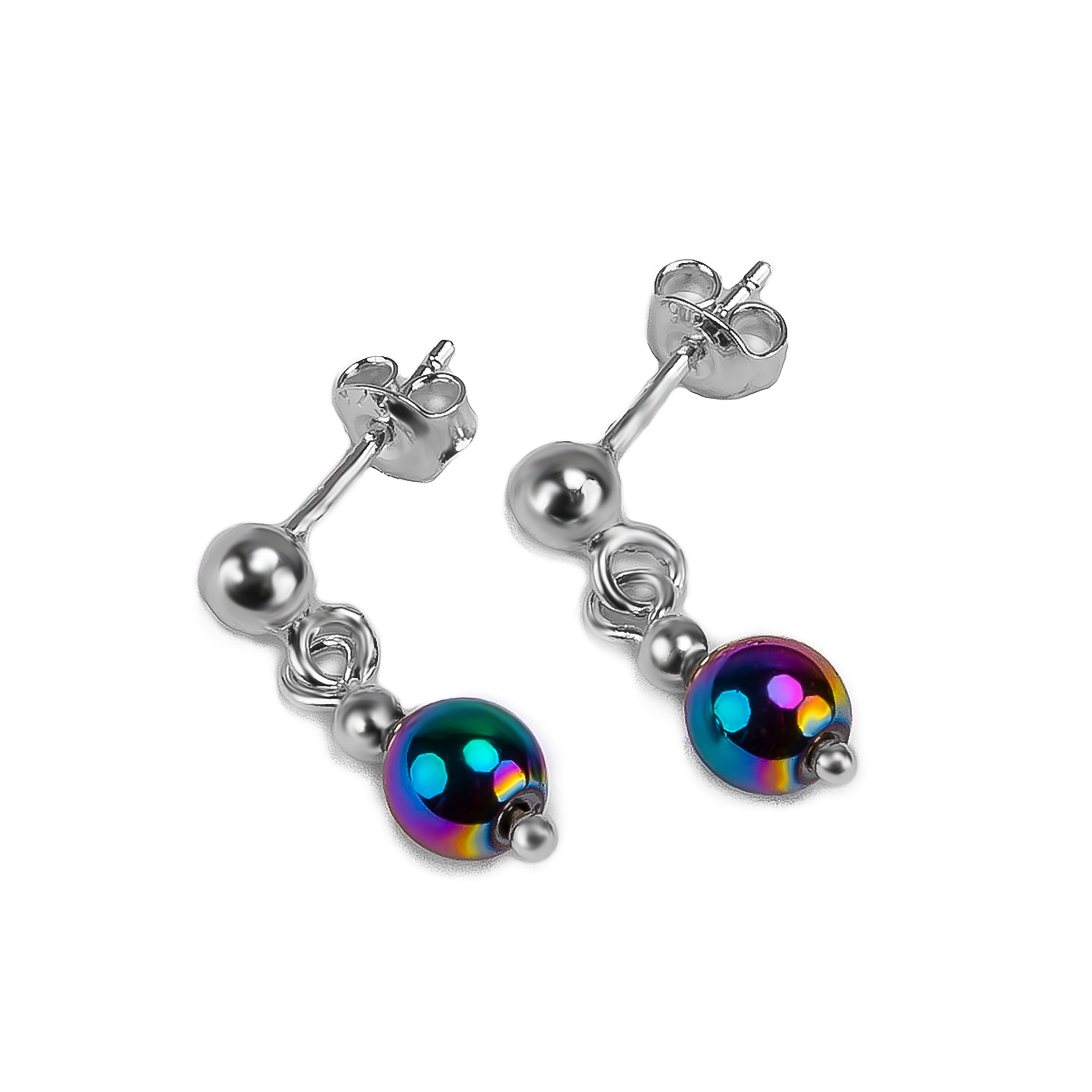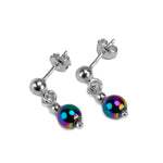 Drop Ball Earrings in Silver and Rainbow Titanium