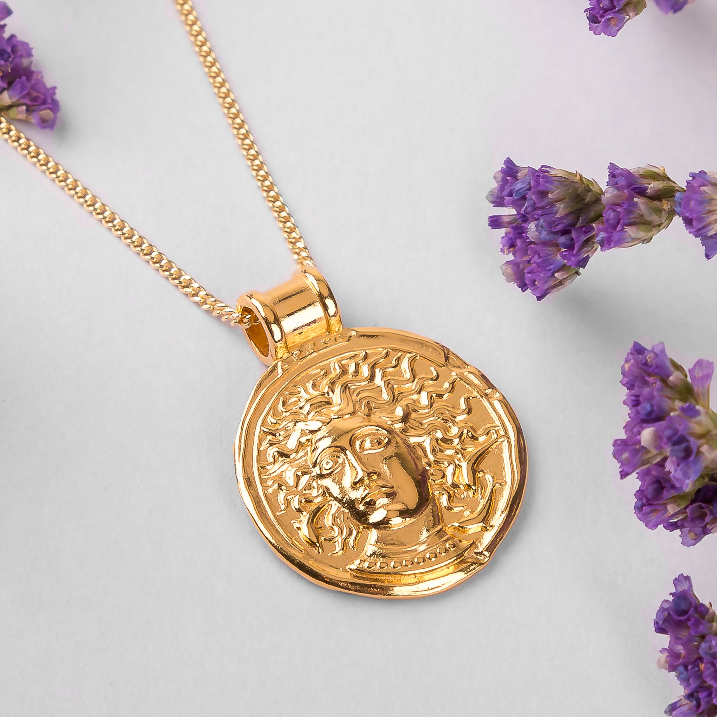 Large Ancient Greek Coin Necklace in Silver with 24ct Gold