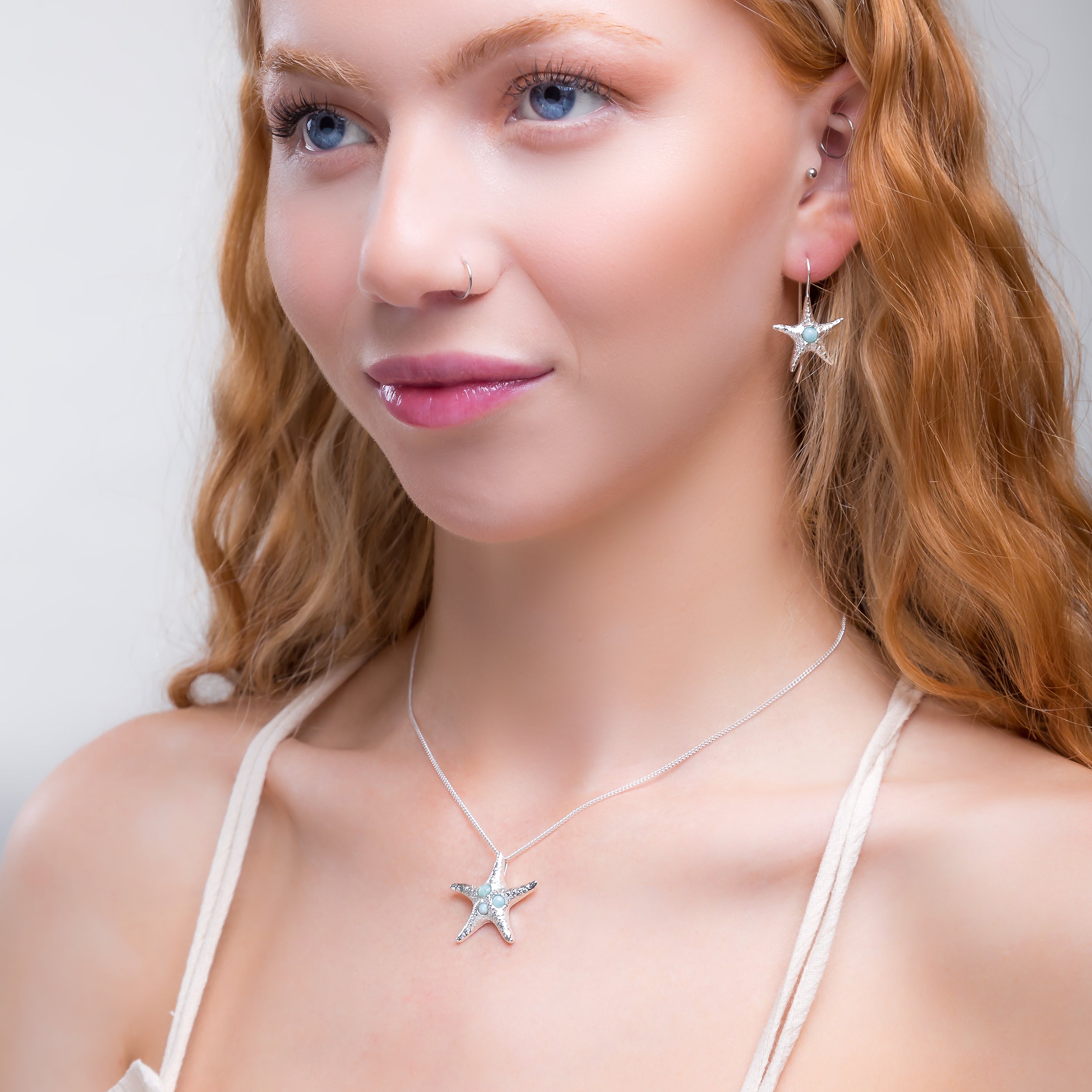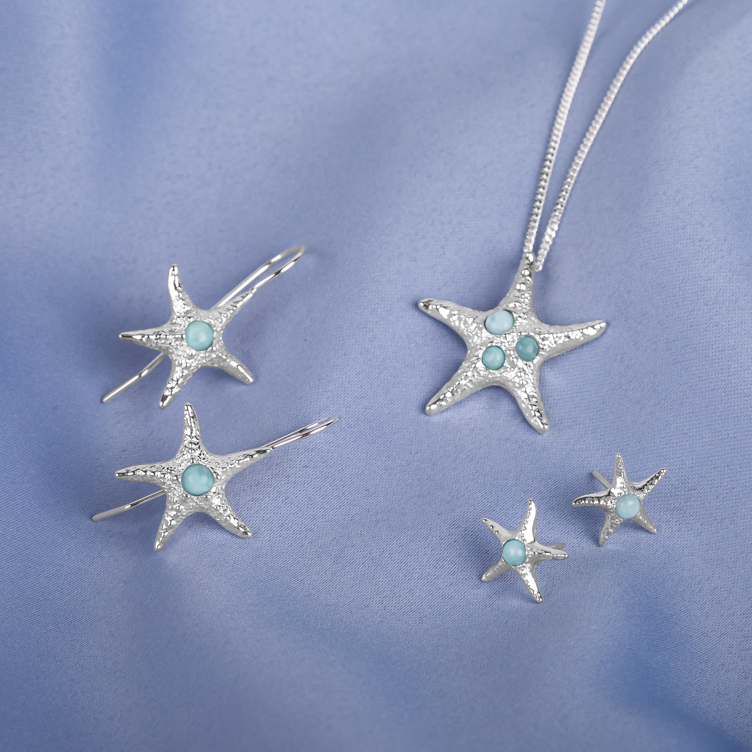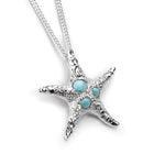 The perfect keepsake to remind you of our summer holiday, our Large Silver & Larimar Starfish Necklace will be treasured always.