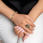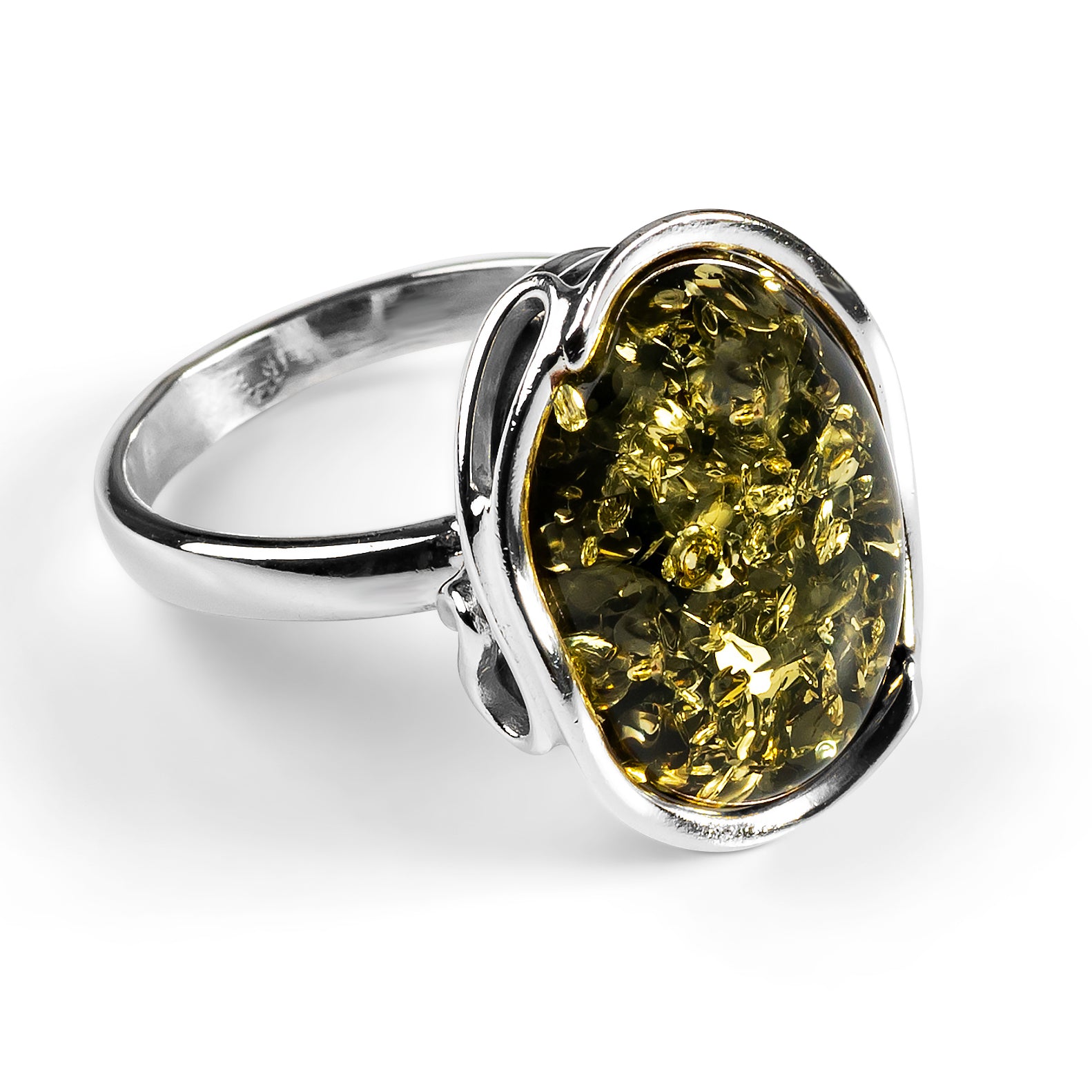 Let you individuality shine through with our stunning Handmade Green Amber and Silver Statement Ring.