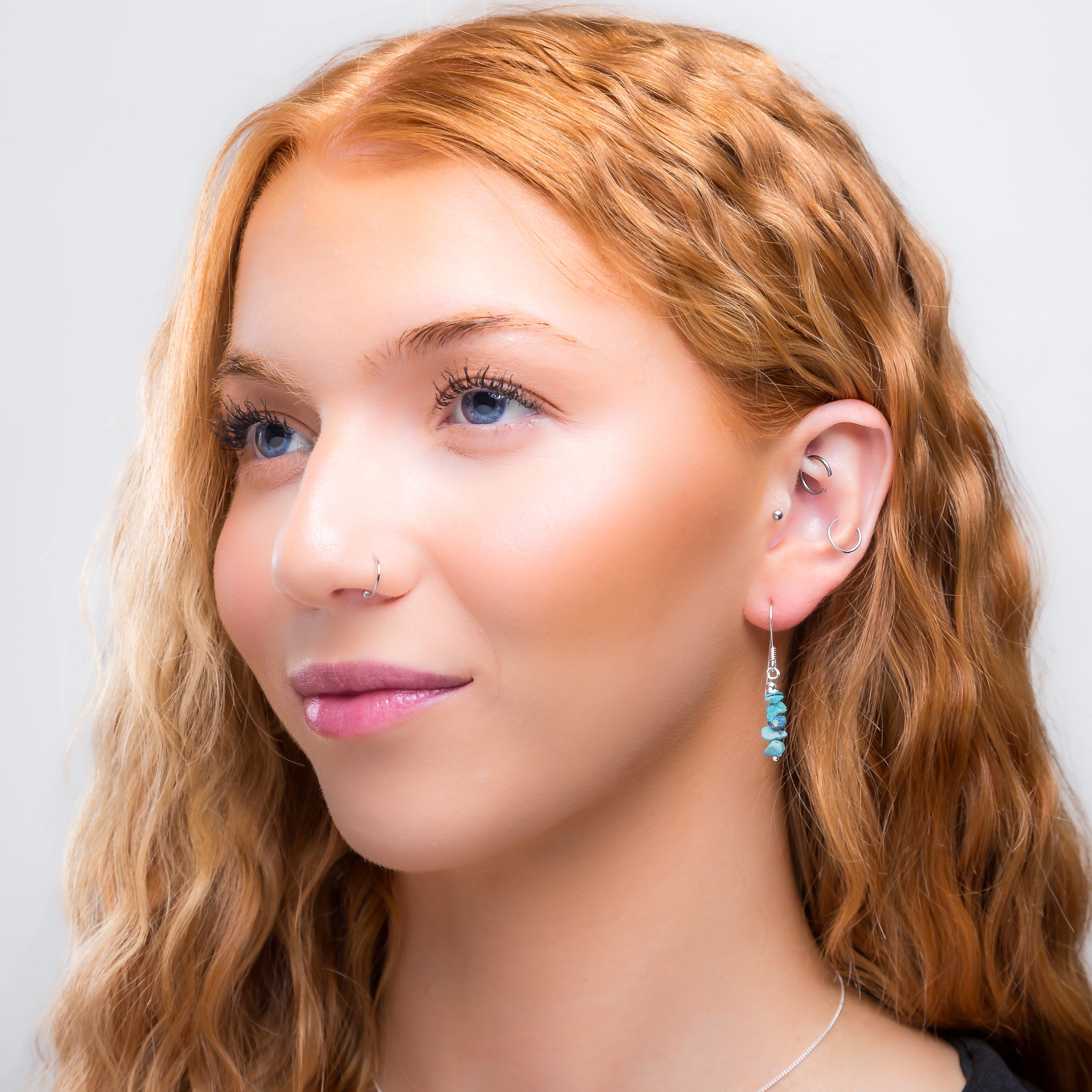 Effortlessly stylish Silver and Turquoise Mini Nugget Bead Hook Earrings.