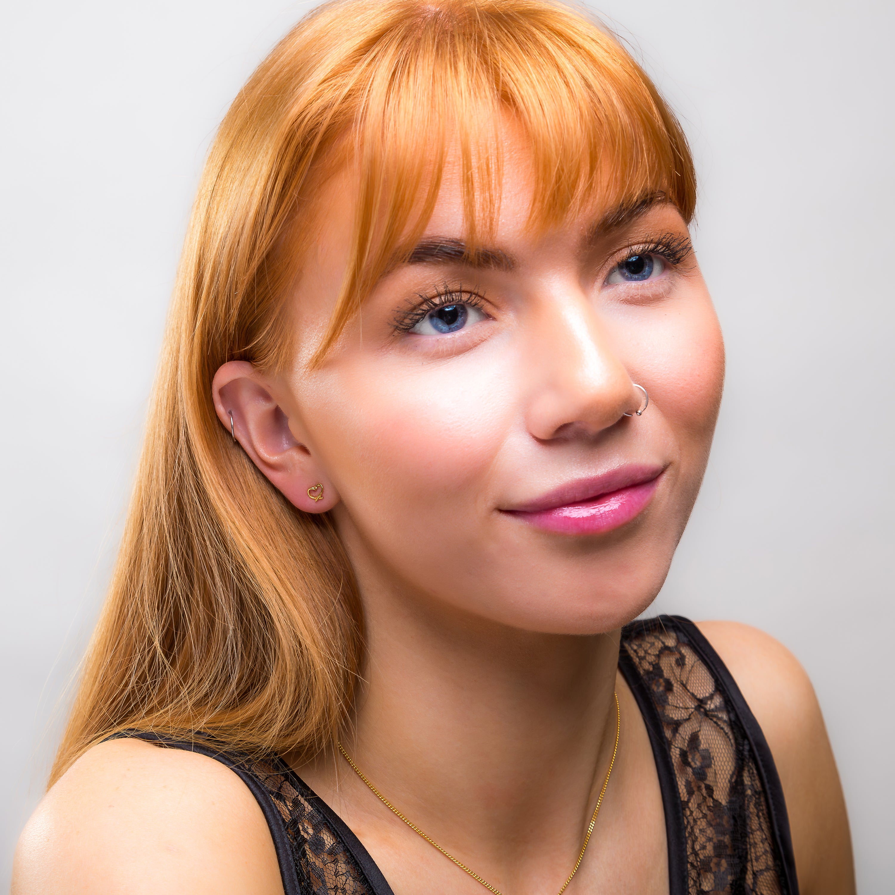 Miniature Open Heart Stud Earrings in Silver with 24ct Gold