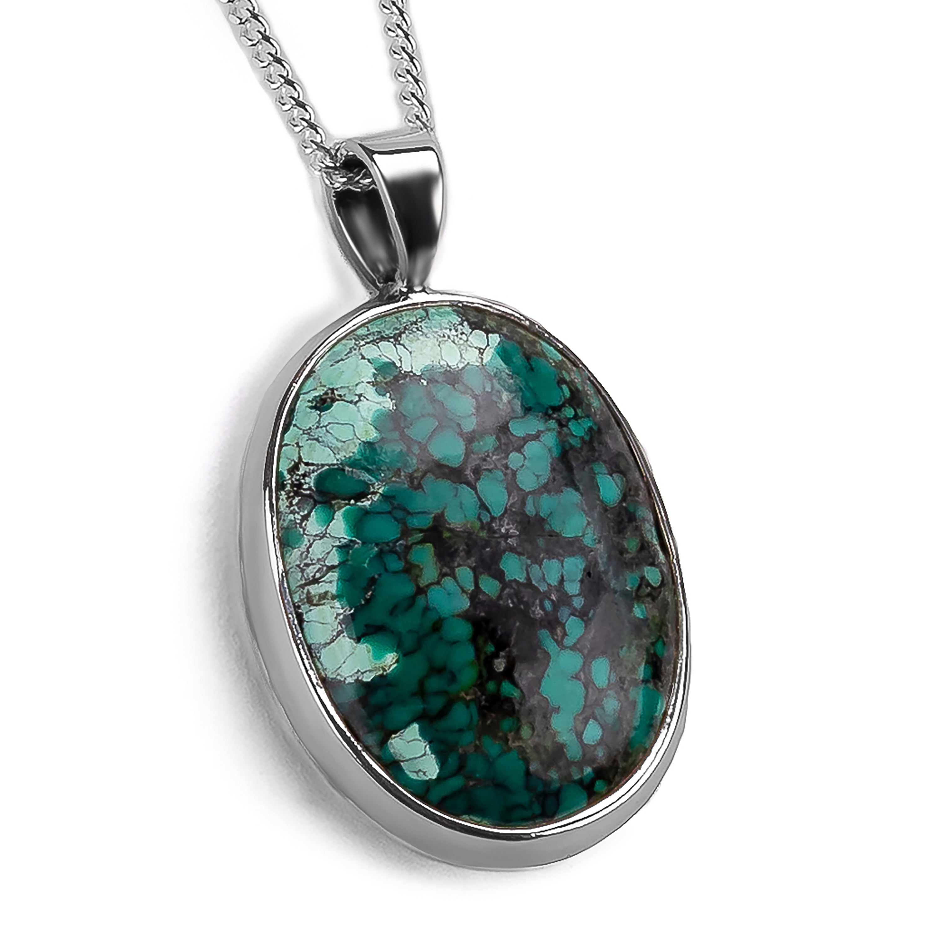 Oval Tibetan Turquoise Necklace -Natural Designer Gemstone