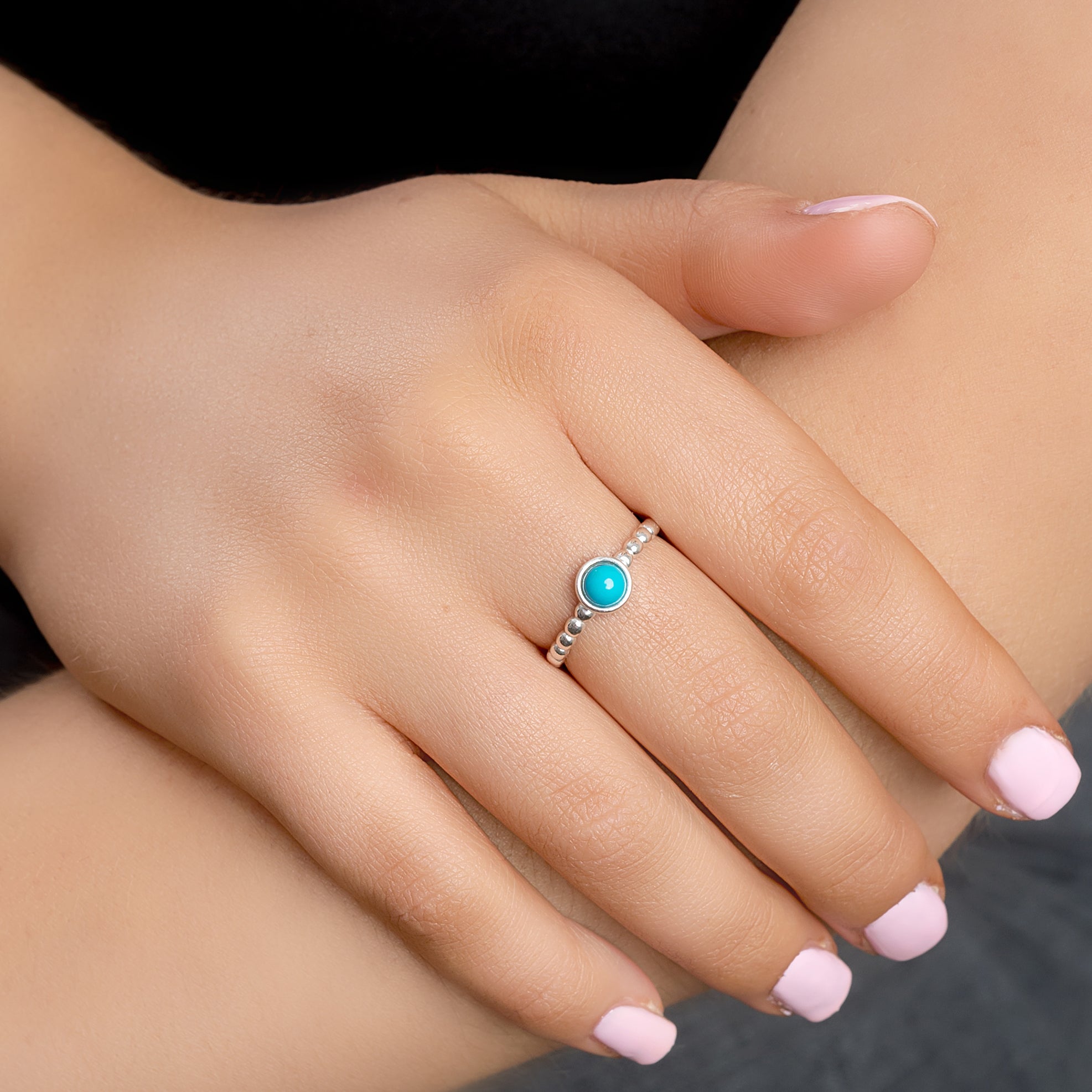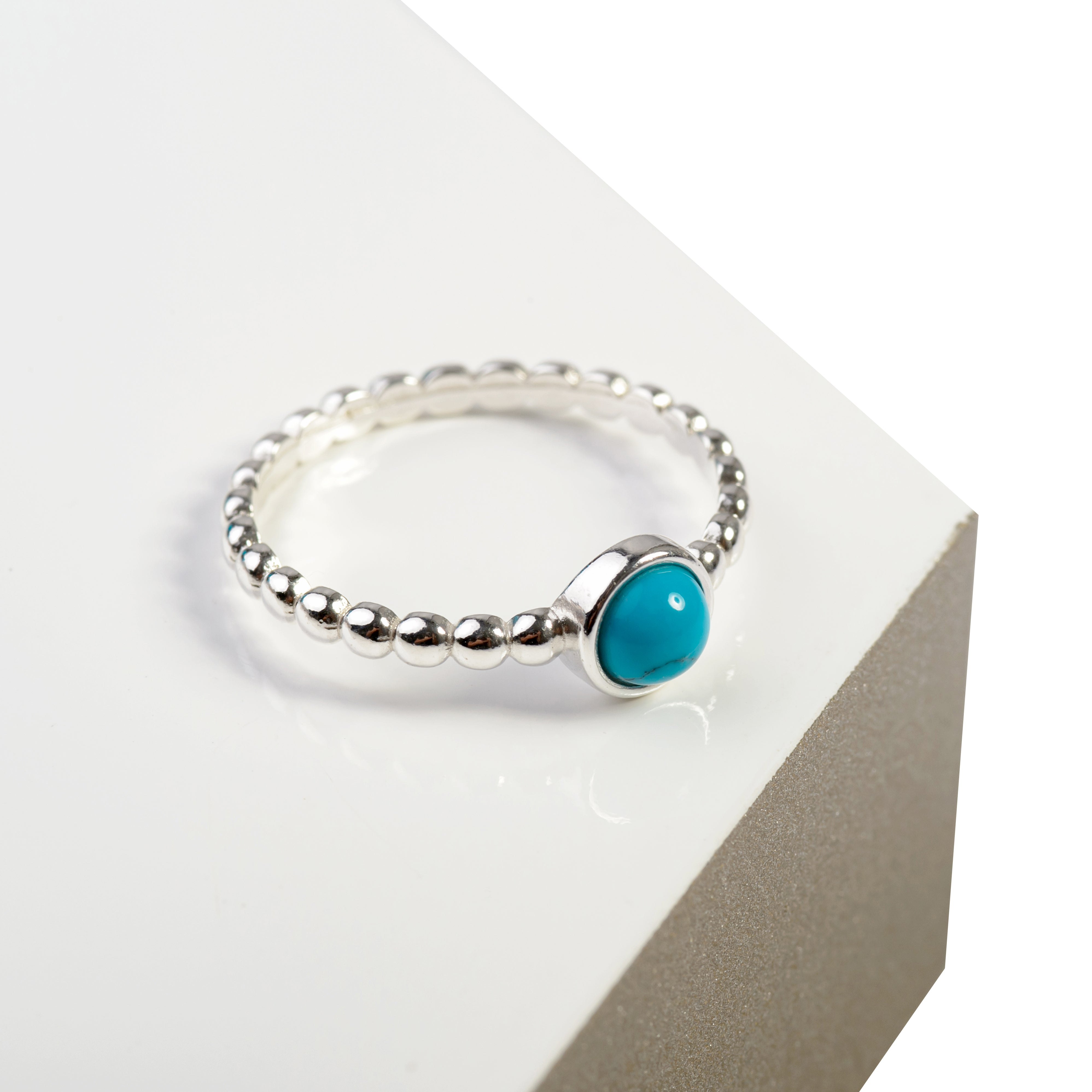 Crafted in solid 925 silver with a carefully designed beaded band. All lovingly finished with a gorgeous vibrant Turquoise stone.